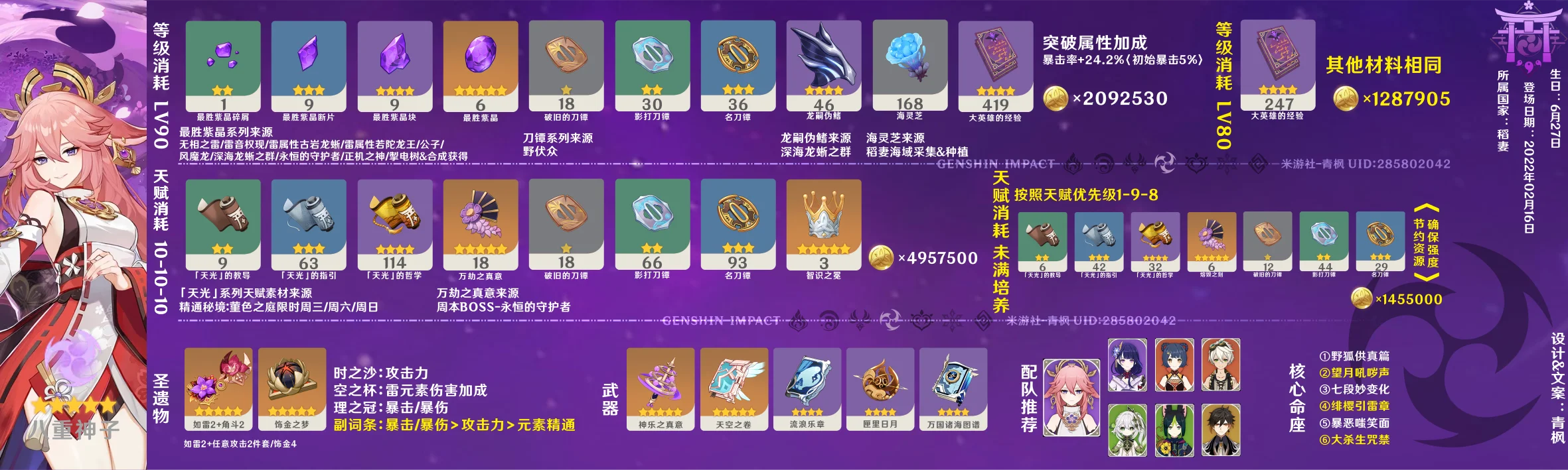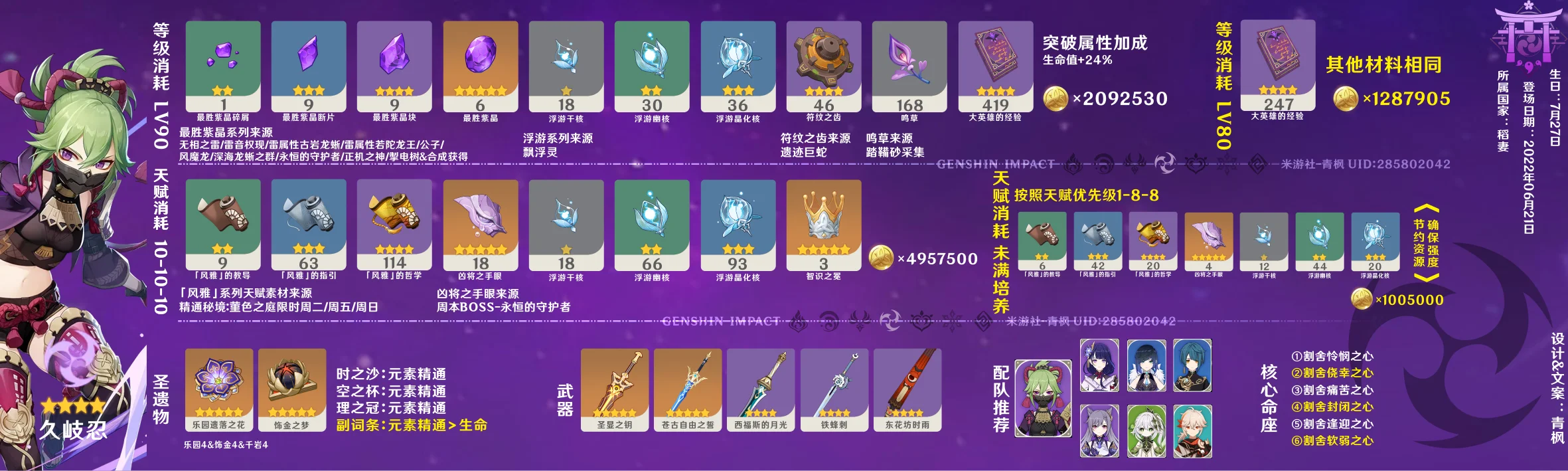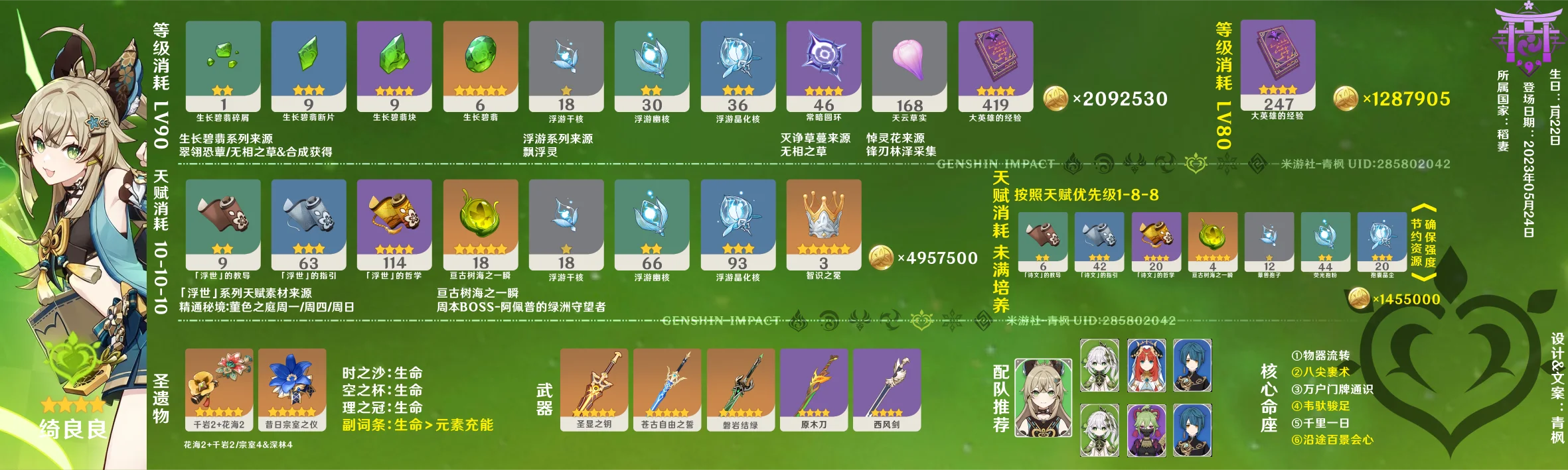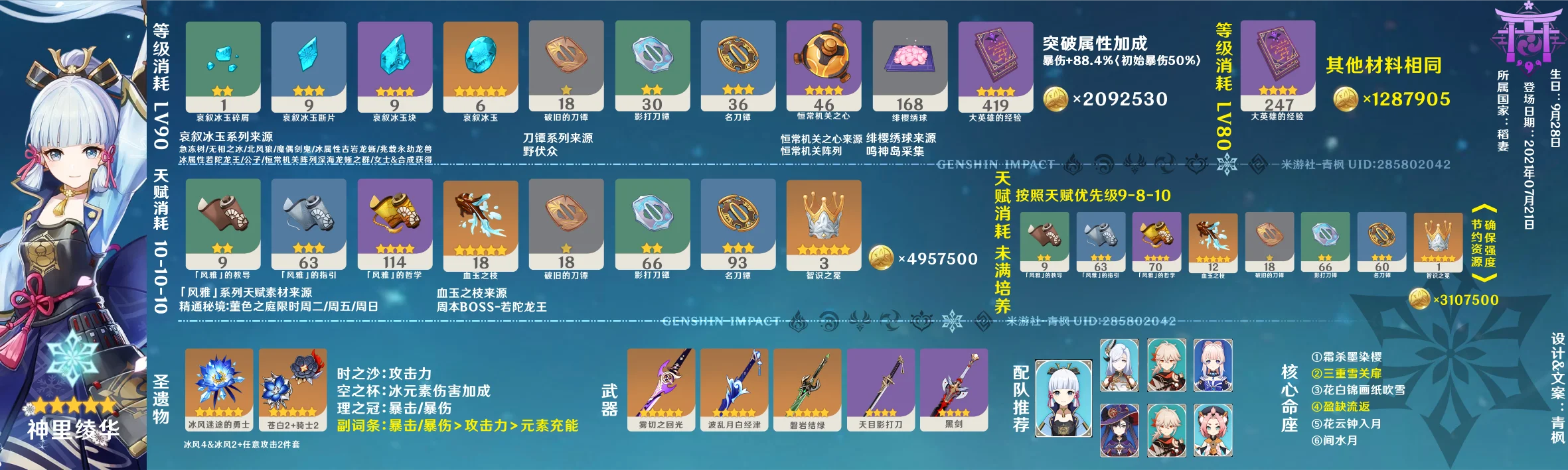 1、等级消耗素材〈含满级lv90和lv80的素材消耗量,资源不足的情况下参考lv80消耗量〉;