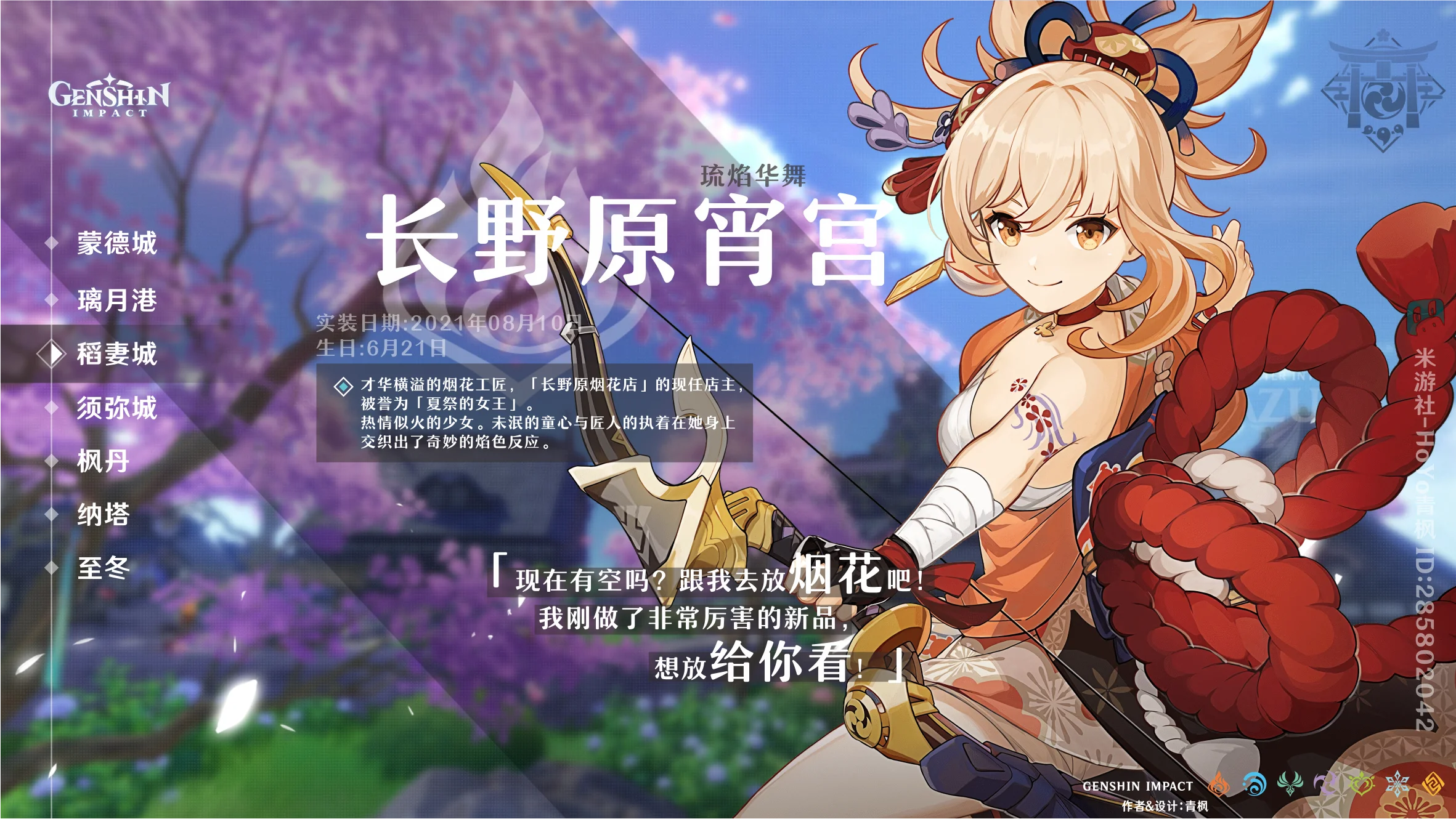 7、角色简介〈各角色所属地区、生日以及游戏内实装日期,方便历史考究〉;