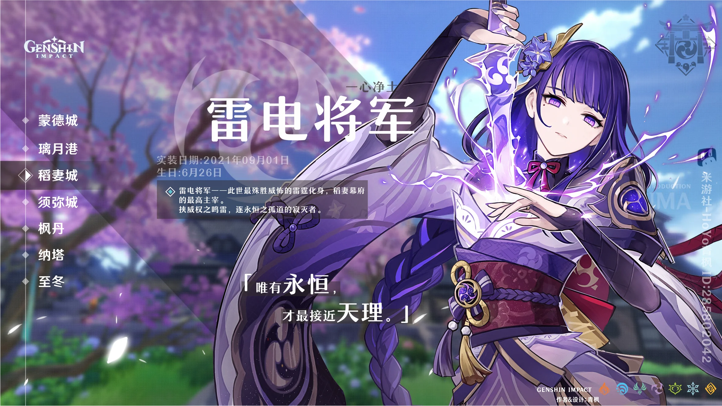其身为御建鸣神主尊大御所大人,许稻妻人民以亘古不变之「永恒」;