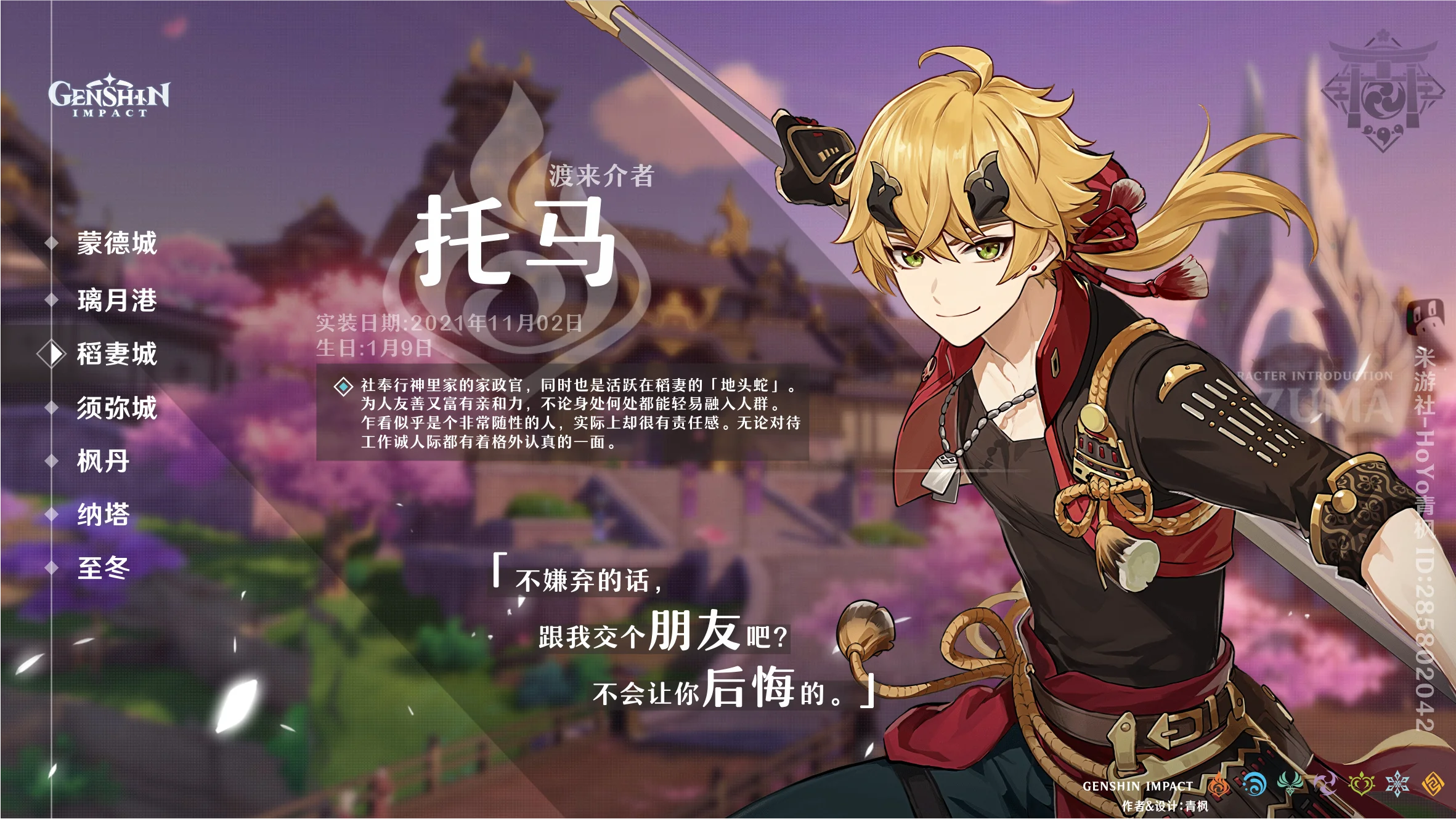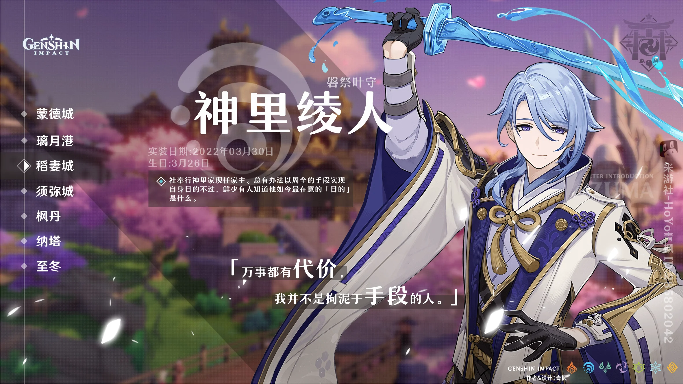 社奉行神里家年轻有为的现任家主,为人温雅有礼,处事颇有手段;