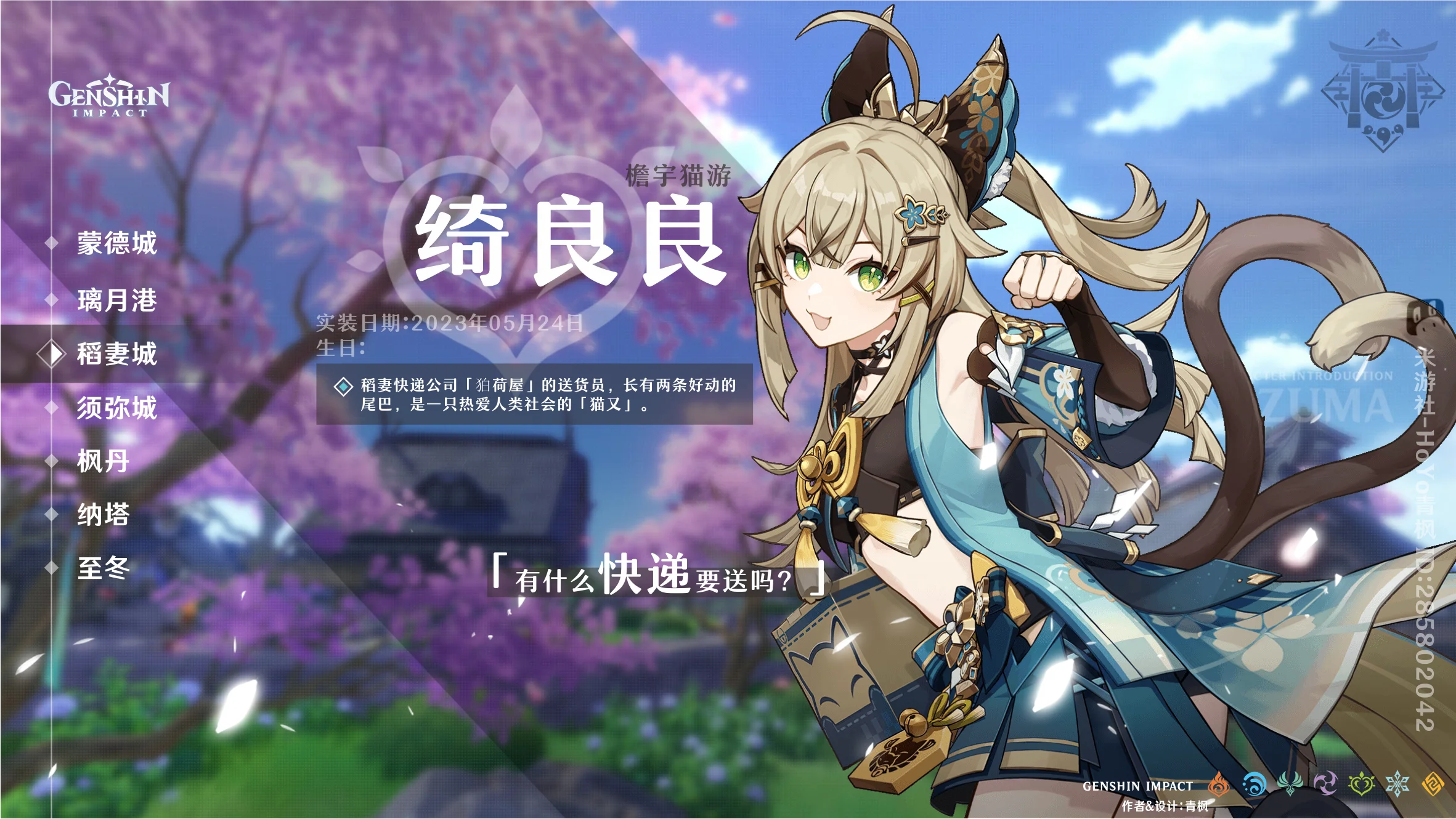 稻妻快递公司「狛荷屋」的送货员,一只热爱自己工作、向往人类社会的「猫又」;
