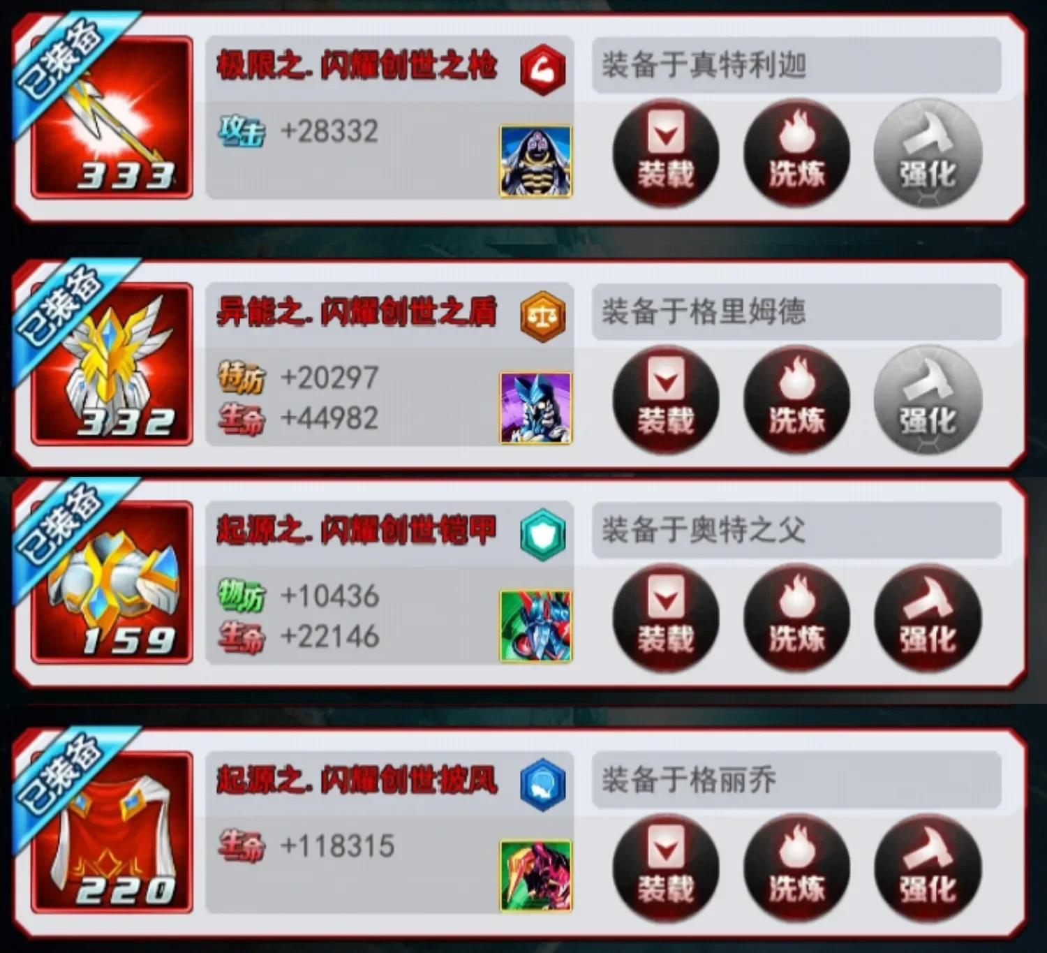 +9 终极战斗仪他黑化了,也变强了。上阵出场时。极恶贝利亚受到<终极战斗仪>的庇护