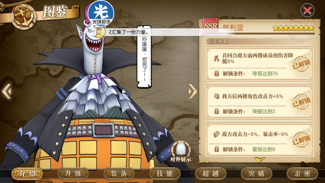 推荐指数:4颗星莫利亚在前期可以用来充当一下肉盾的角色,因为有分身。可以多扛一回合的boss输出。莫利亚需要快速出手叠加影子才能打出伤害,但没有加速天赋,速度过慢,自身又没有保命能力,容易被先手秒掉。对平民来说三星起步,八星完整,不推荐上场,前期打剧情用来扛伤害就行了。