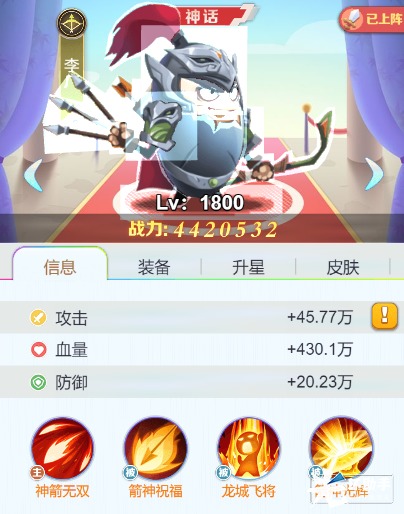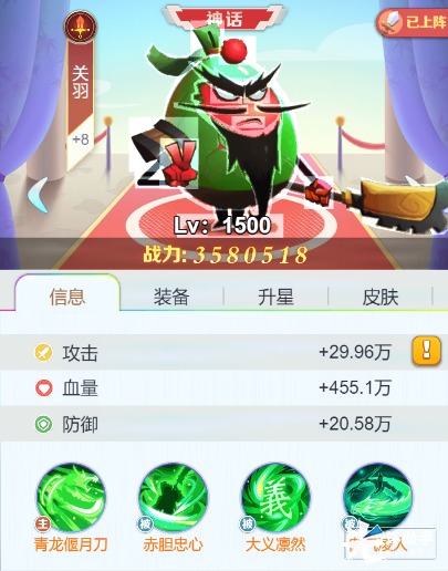 赵云,作为皮蛋自己搭建阵容里的核心武将,前期确实相对来说是乏力一些,推图效率并没有另外三人来的强,哪怕搭配了专属神器梨花枪,可毕竟是收割英雄,打扫残局还是可以的。如果前期能抽到专属,还是可以作为核心输出放在二排当主C卡的。