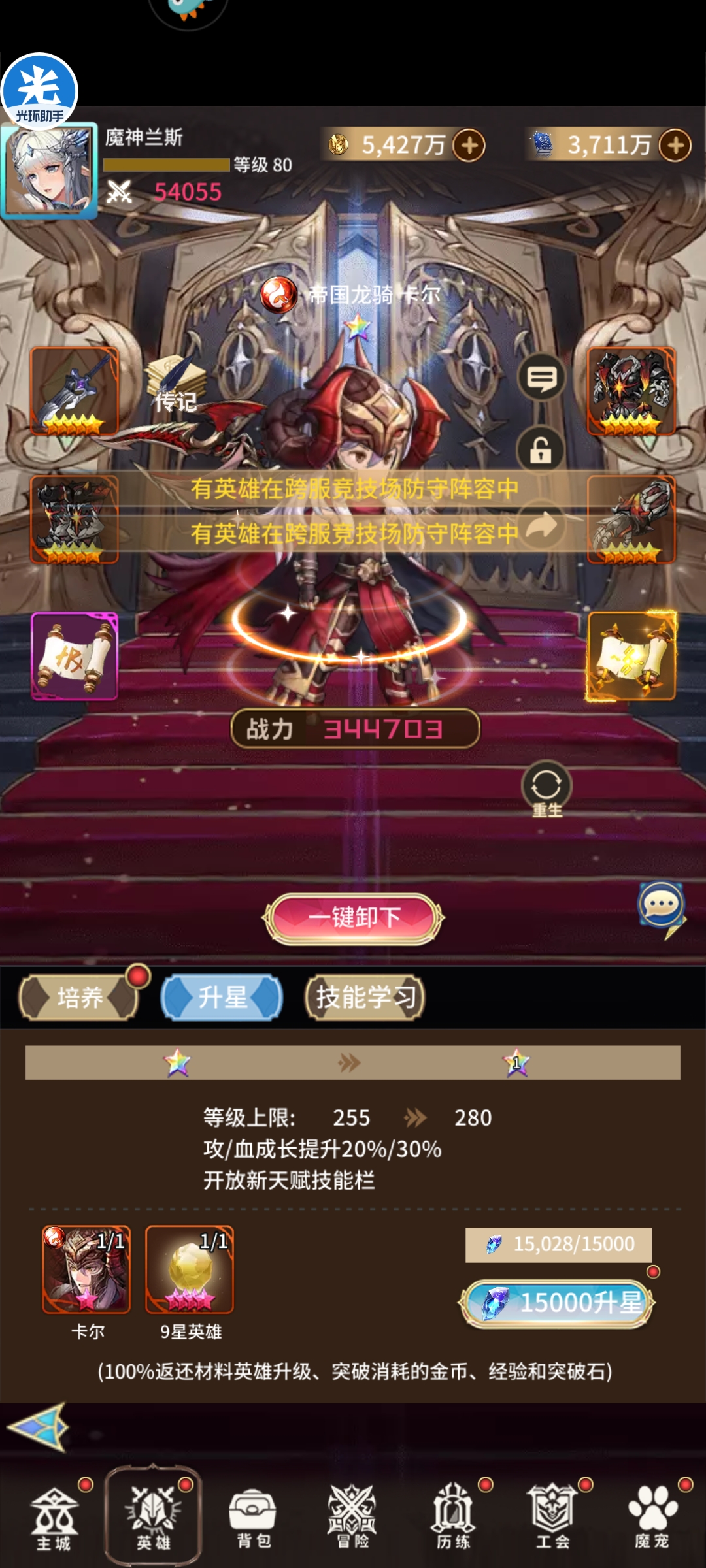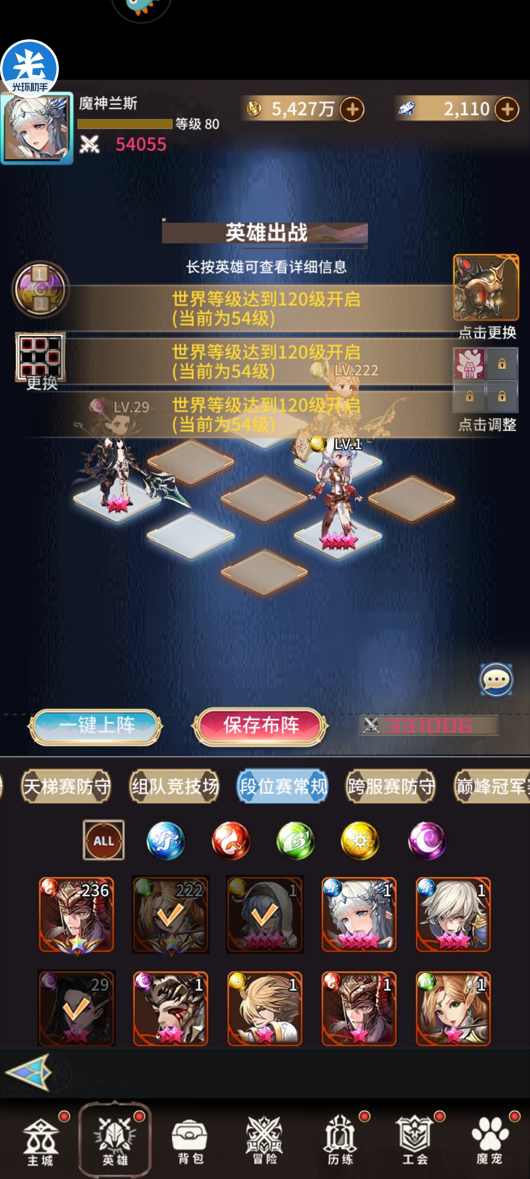 主界面有个跨服战场,进去有个跨服竞技场,防守队伍里下了就可以。你从阵容队伍进去找不到的