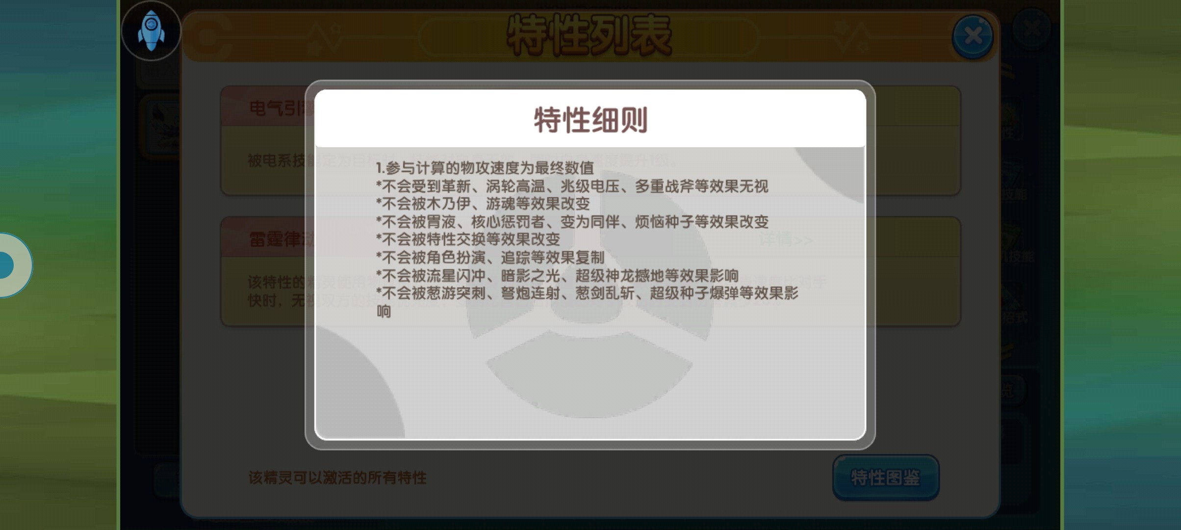 剩下的两个效果都是和自身的速度有关了,如果自身的速度比对方快,可以无视双方的优先度技能,比如说假设电猫要使用专属技能等离子重拳