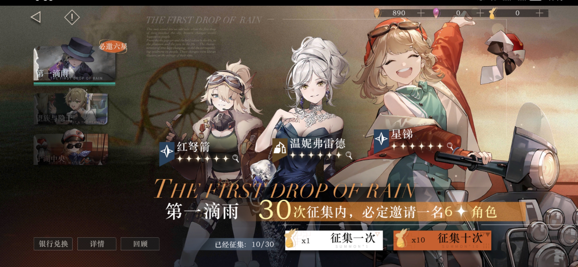 首先的话,第1个十连我推荐抽这个新手池子。因为这个池子30次就可以必出一个6星。