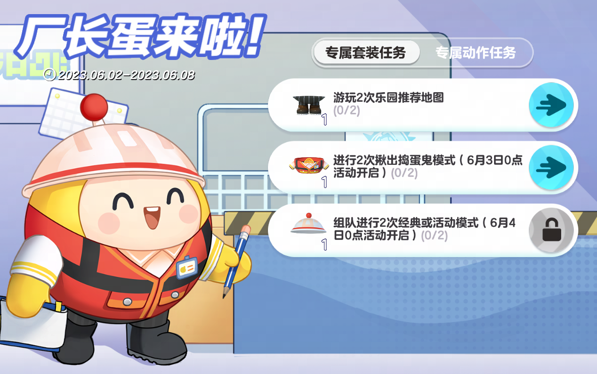 活动内容:参与活动即可自动获得厂长蛋套装外观以及专属“拉闸”动作!天黑请闭眼厂长拉闸啦!