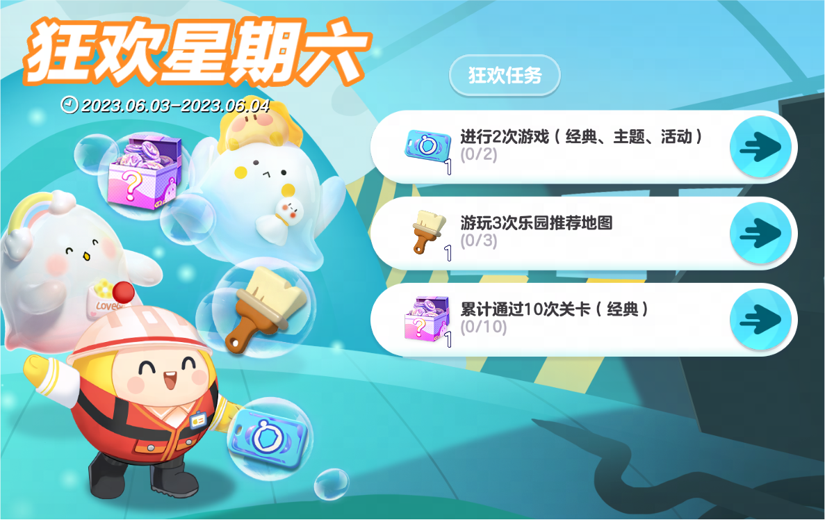 狂欢星期六,免费放送彩虹币!完成任务即可领取彩虹币宝箱、油漆刷、巅峰派对保护卡!快来邀请蛋搭子一起领福利!