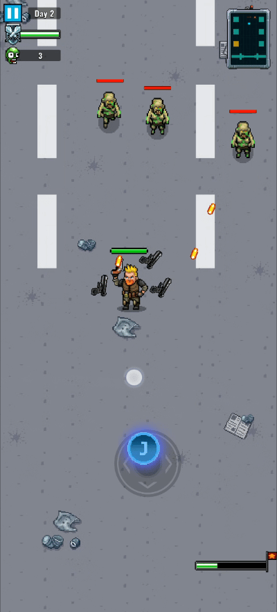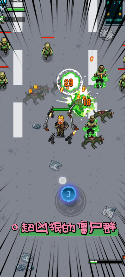 ✍游戏的玩法主要以生存为目的👀,我们要控制英雄射击向我们袭来的僵尸🧟♂️,查看右下角的加载条可了解僵尸的进攻的进度。