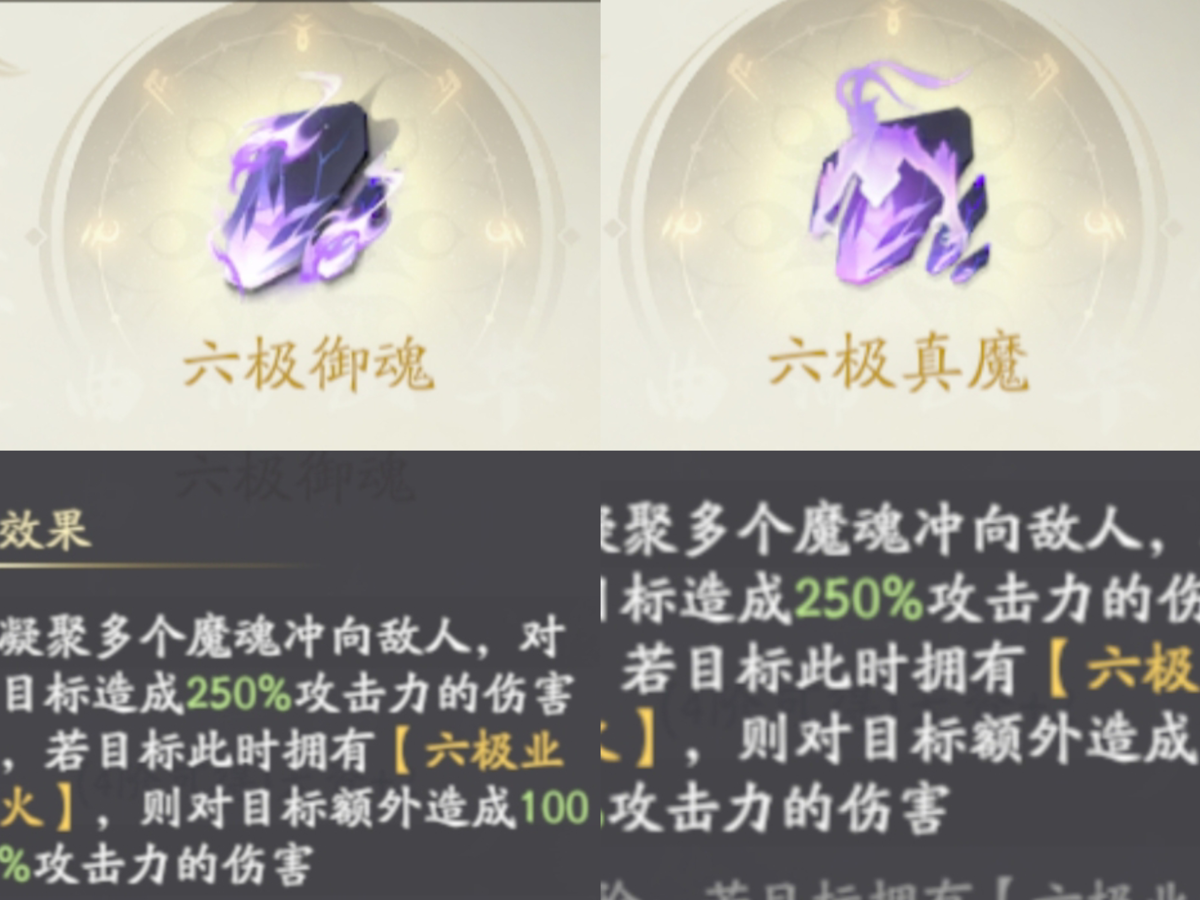 第二注意事项就是六极真魔+六极御魂为一个技能组合,御魂一定要放在真魔后面,才可以激发真魔的额外伤害。