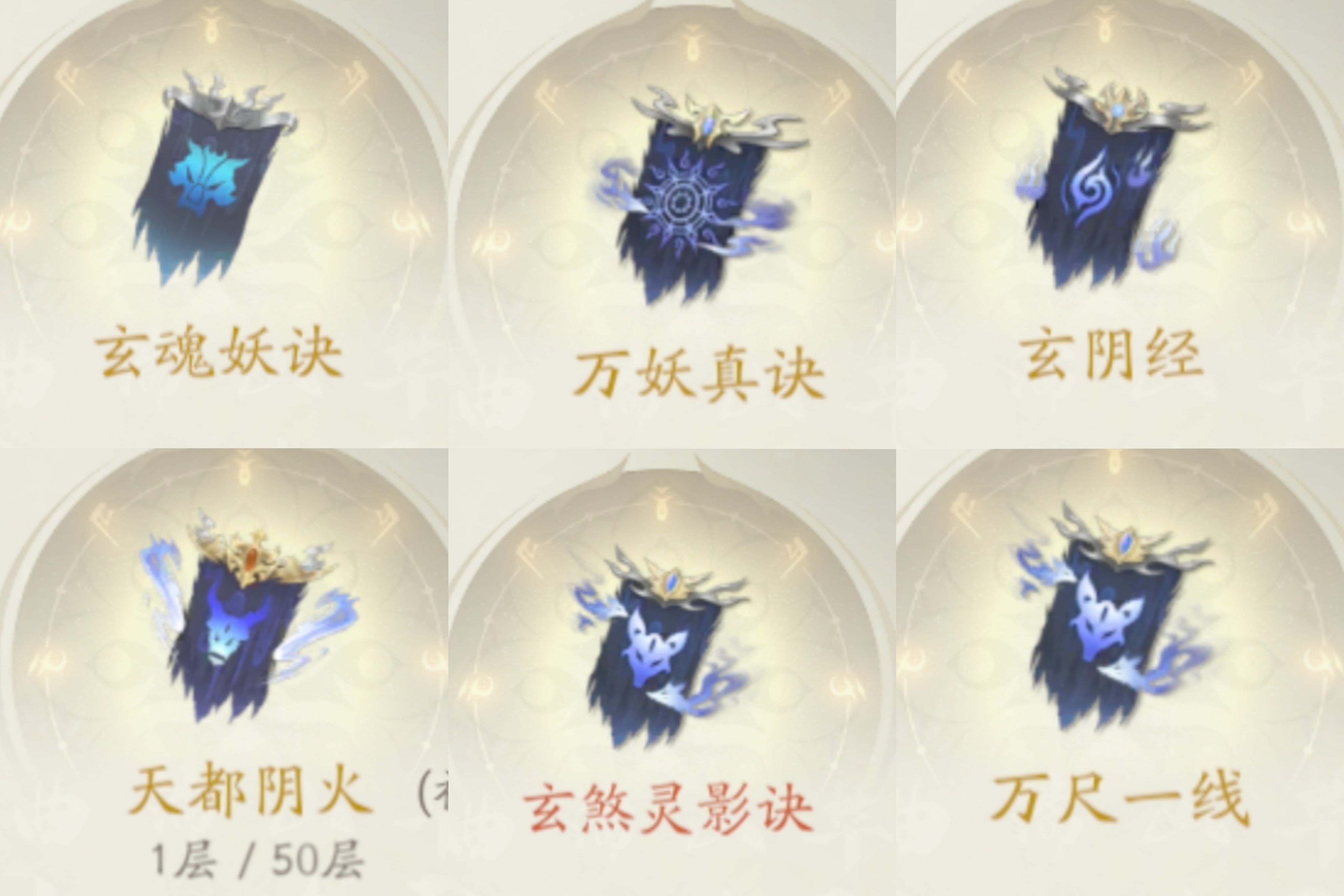①玄魂妖决+②万妖真决+③玄阴经+④天都真经+⑤玄煞灵影决+⑥万尺一线