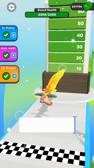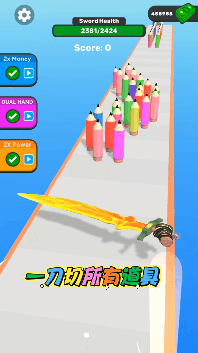 ✍锋利的宝剑在赛道中开始切物品时,宝剑会自动向前冲刺🏁,我们只需要滑动屏幕控制宝剑切割就可以了,想要挑战更高的关卡就必须锻造出更锋利的宝剑才行👊。