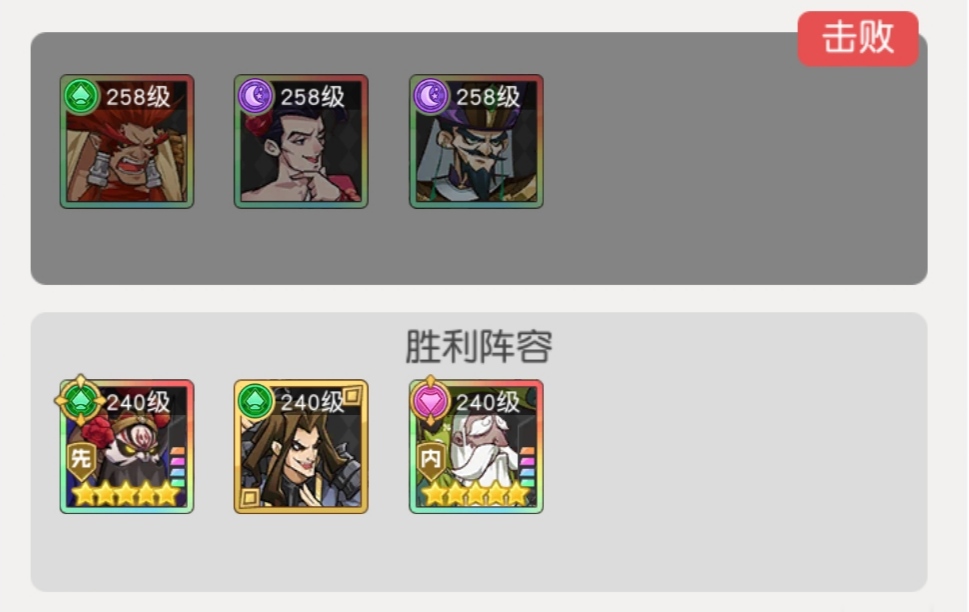 5.敌方英雄(神话晁盖、神话方腊、神话焦挺、神话高俅、神话凌振)VS我方英雄(最强战力即可)站位:朱仝1号位、杨春2号位、后排随意(正常输出即可)该阵容应对关卡难度:★☆,一次性过关几率:99%。