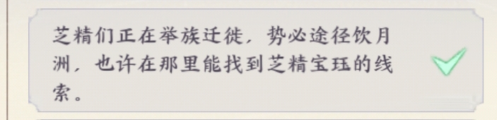 来到饮月州跟着主线走,中途就就可以遇到一个因为迁徙而走散的小芝精,点击对话就可以触发完成芝精玉林的第二条线索,这时候就成功开始芝精玉林的触发任务了。