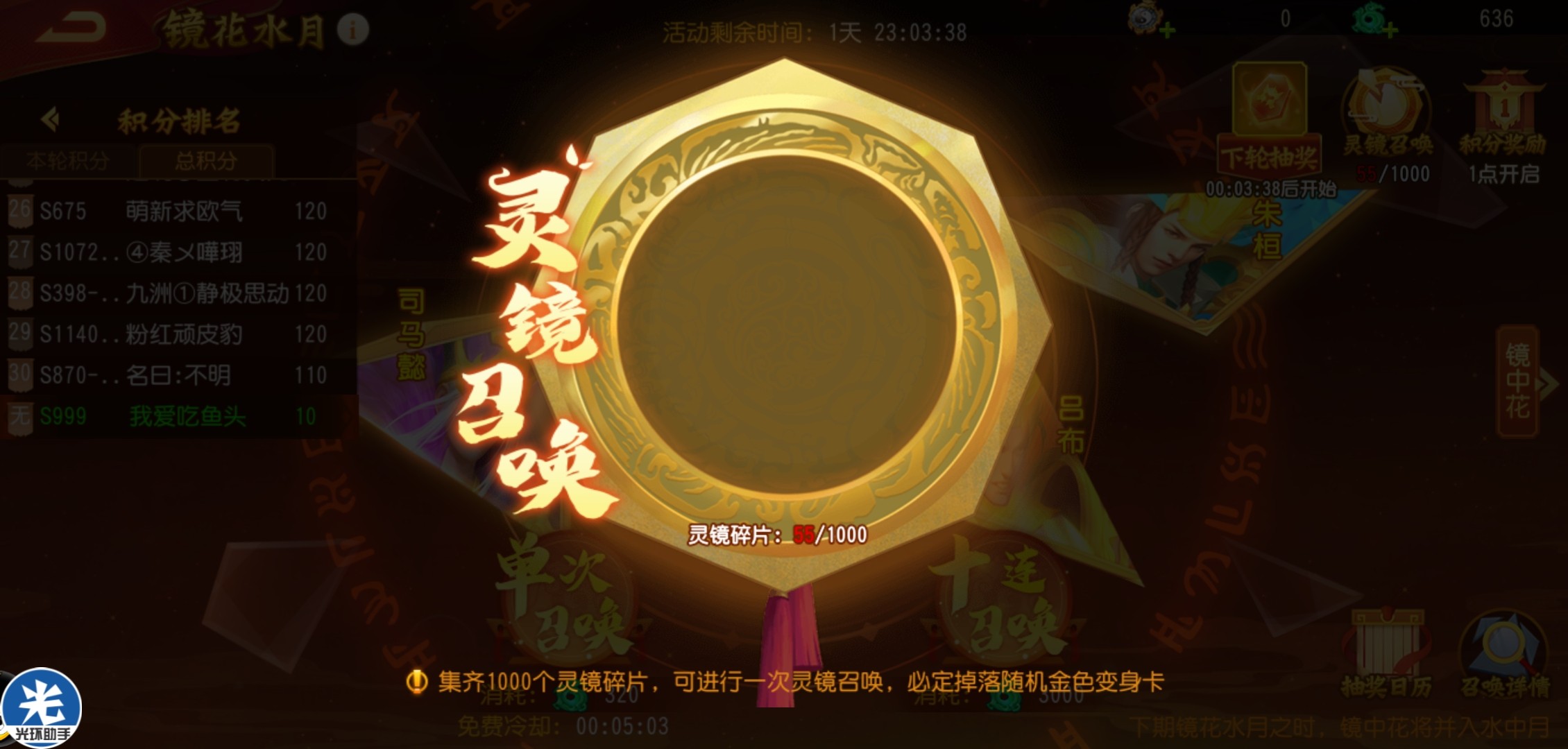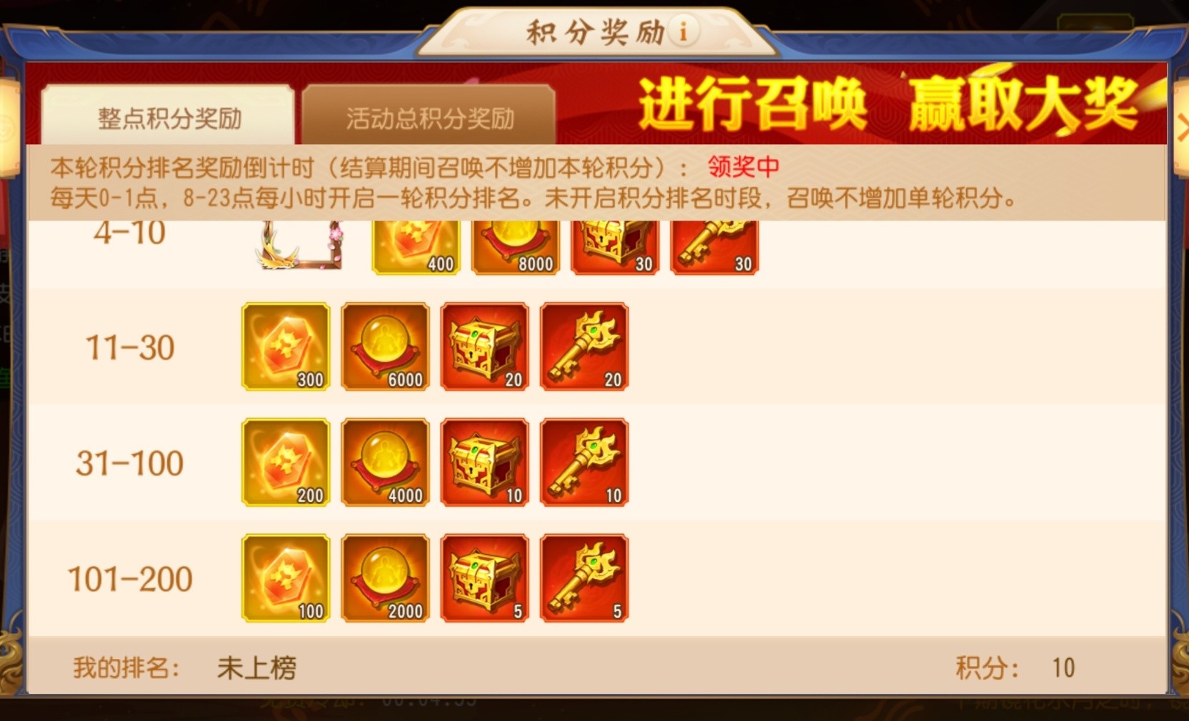 每场欢乐抽奖都有一个排名积分奖励,到达200名以上,就可以获得100灵境碎片奖励。