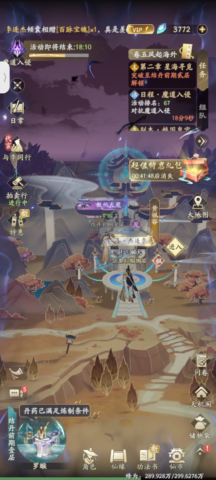 走路的时候看到一个储物袋,然后里面有个明光灯,具体位置就在黄枫谷
