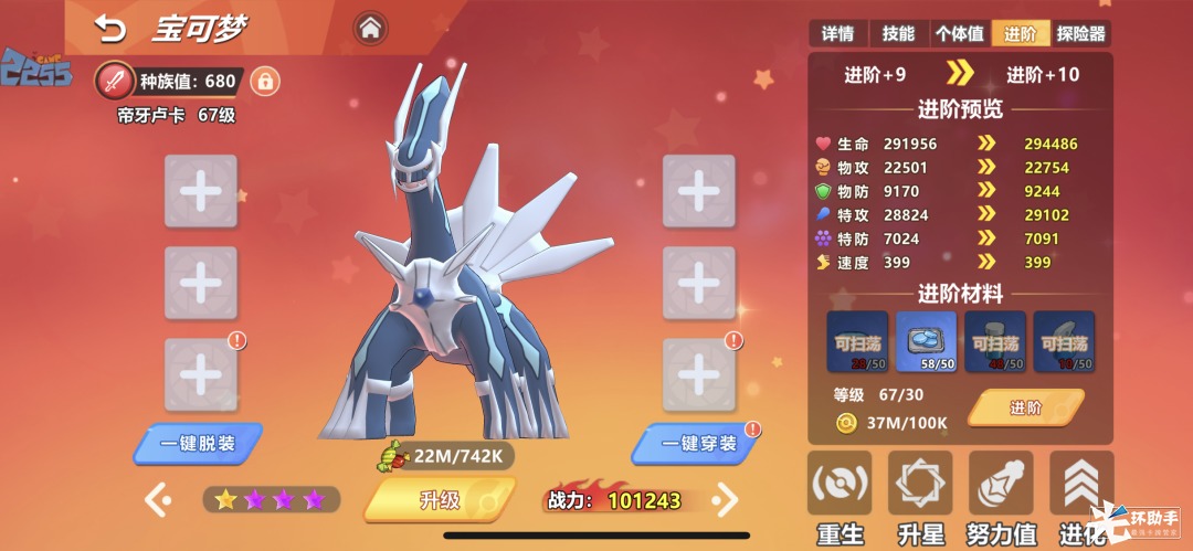 进阶也是提升宝可梦属性的,消耗对应材料即可。