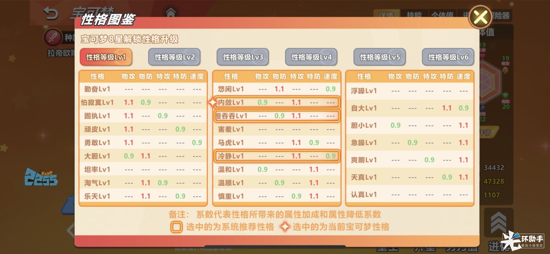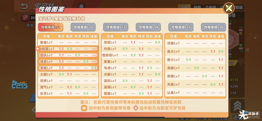 除了上述的这点,在选择性格的时候,还要关注宝可梦的技能效果和升星效果。