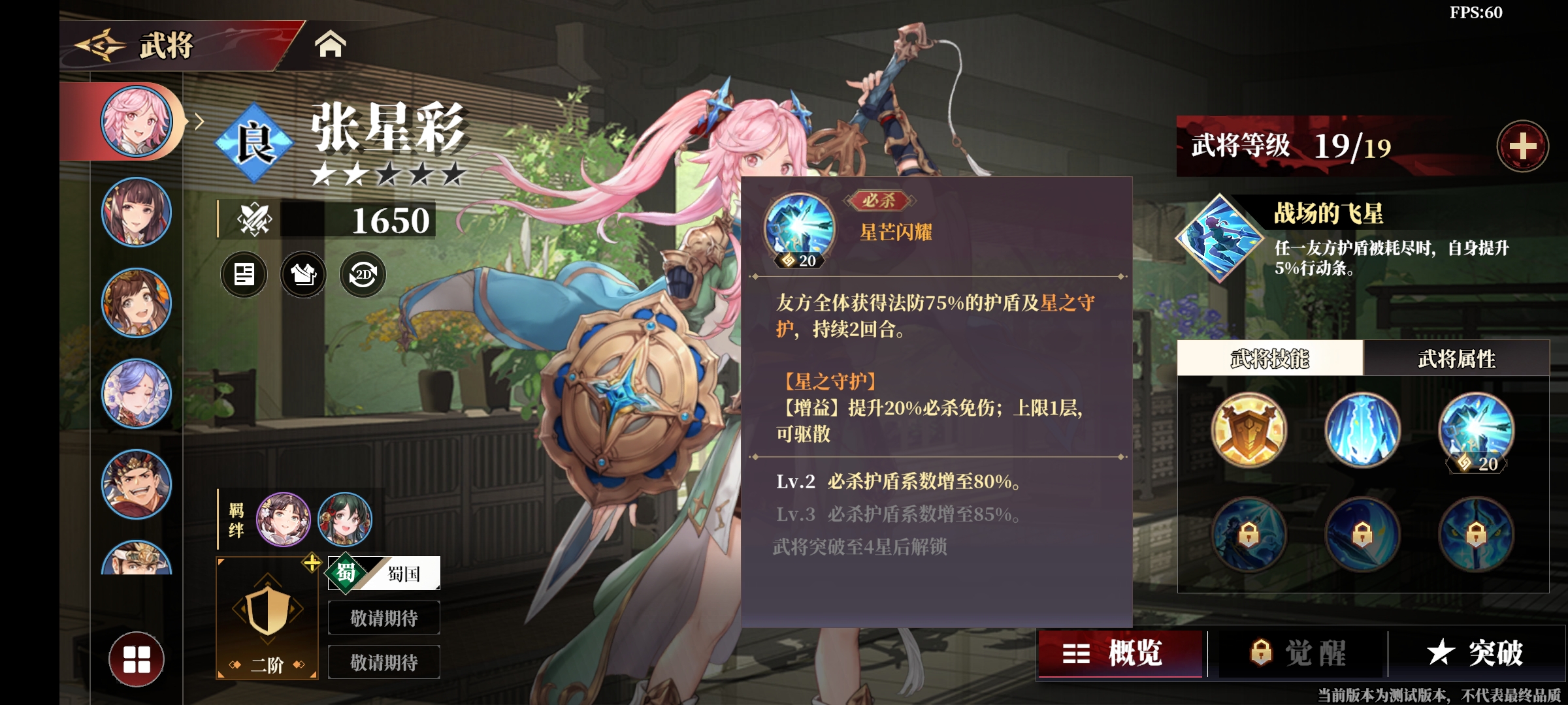 配队方便一点要带一个张星彩,那个护盾真的太顶了,前期最好用的了属于是,其他的角色我还没有抽到,所以不做评价,张星彩是蓝卡比较好获得。