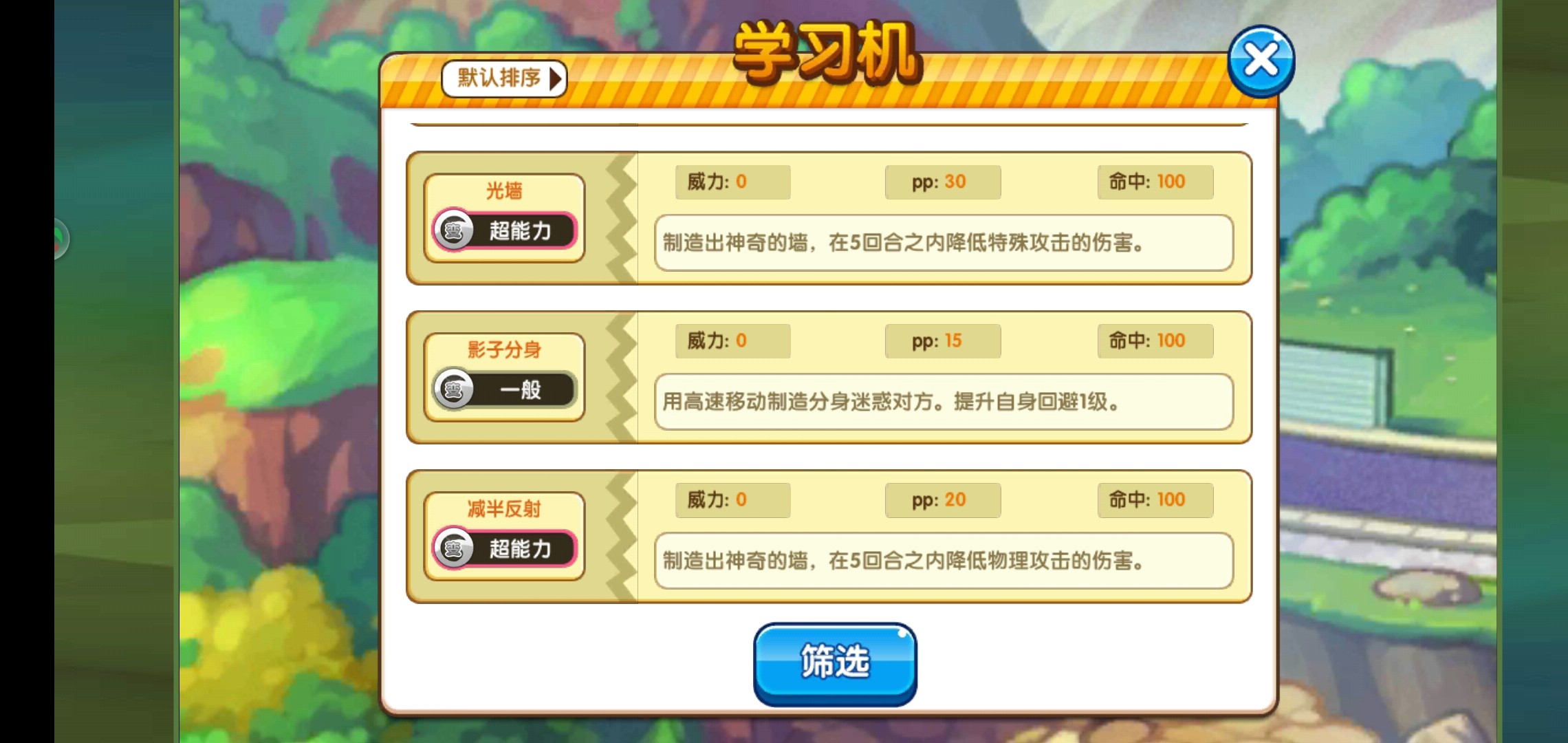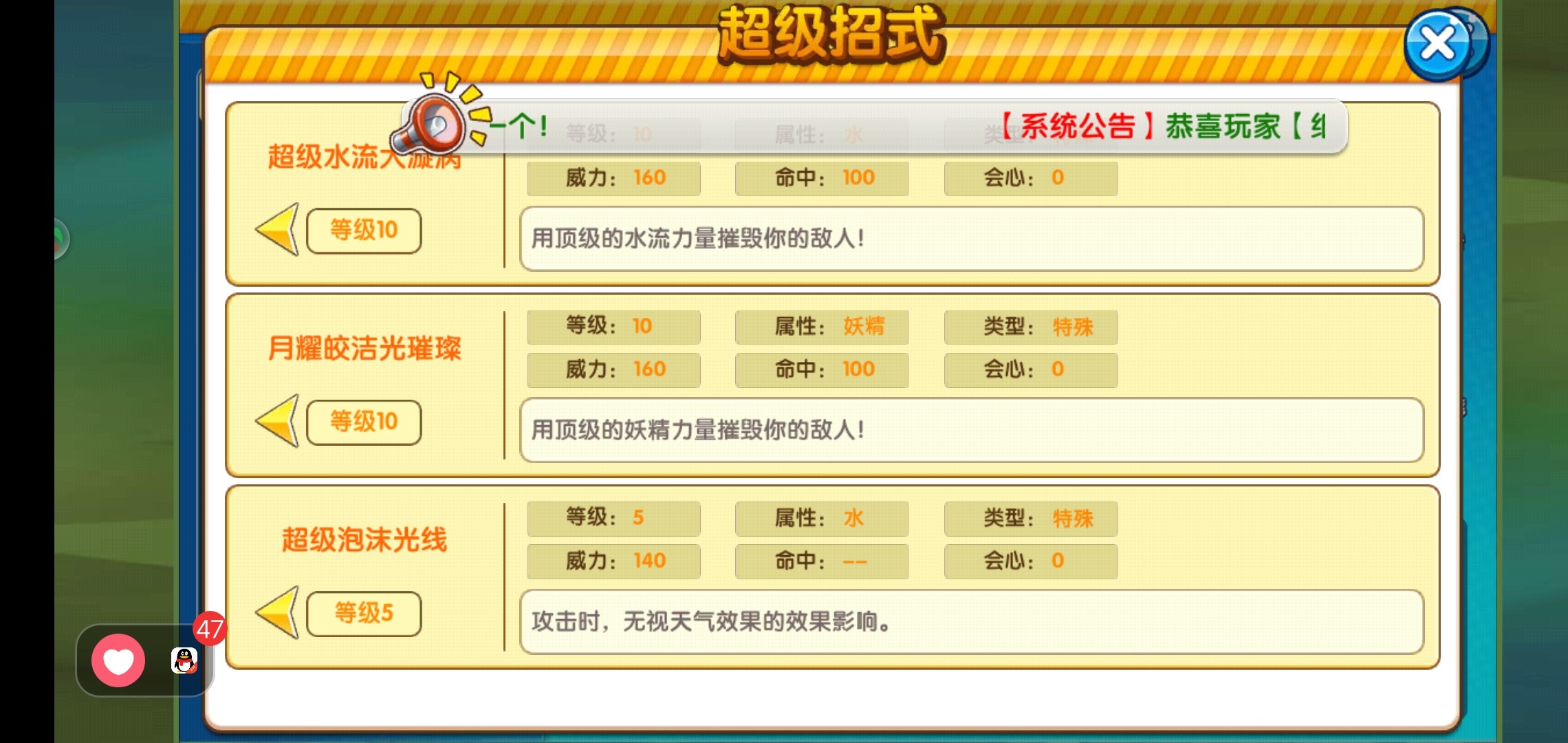 说明:这个配置在战斗中非常有用的,每个技能都有各自作用,集结了很多辅助的功能于一身,可以说相当于低配版琪琪,首先是光墙或者减半,这个是辅助神技,可以凭借这个让它附着全队,月光是回血续航技能,在一般天气下直接回半管血,和自我、歇息一样使用起来没那么多限制,潮璇是捉人技能,配合咒语反制可以针对一些辅助,而带弹射的原因就是针对辅助天敌白鬼,比如你准备当墙,对手如果有白鬼很大概率就会切白鬼来捉,这时候你一个弹射切出克制宠物。Z技能