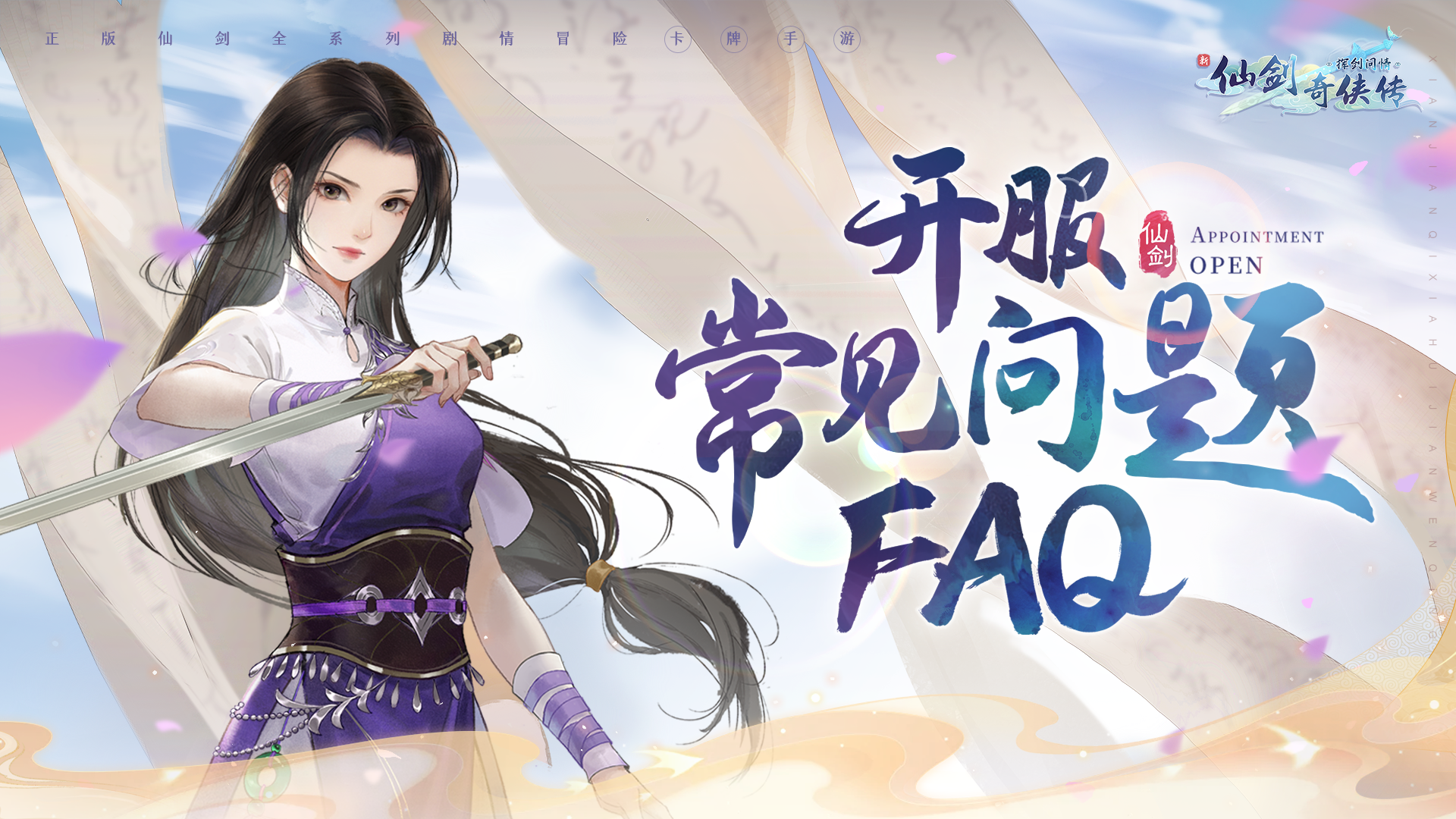A:《新仙剑奇侠传之挥剑问情》已于6月8日0:00开放预下载,各位大侠可以先进行预下载及注册账号操作,但暂时无法进入游戏。服务器将于6月9日10:00开放,届时大侠们即可进入并体验游戏辣~