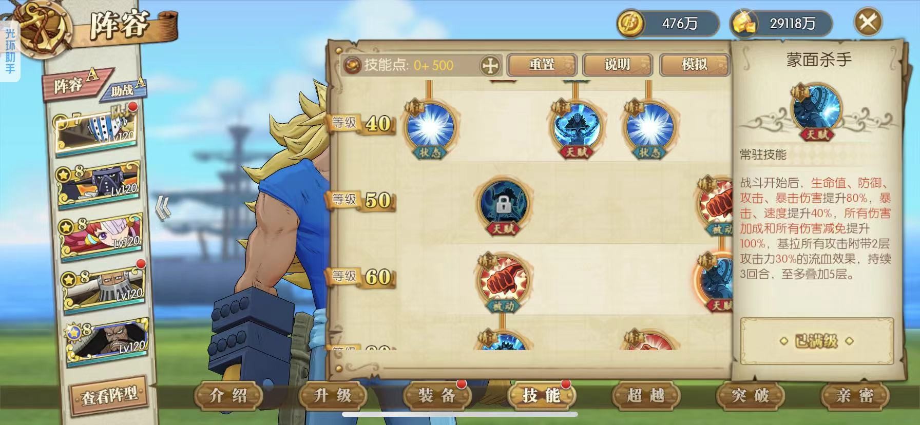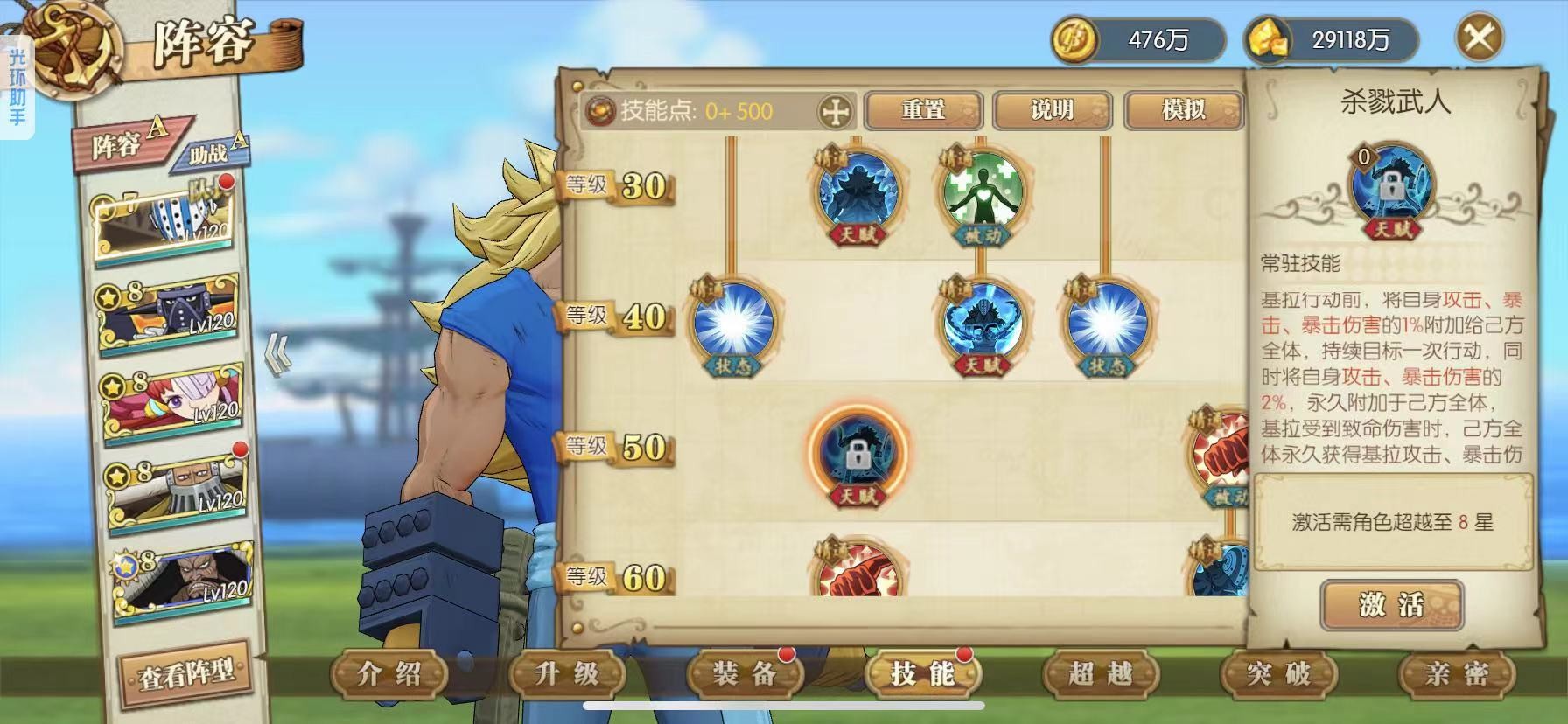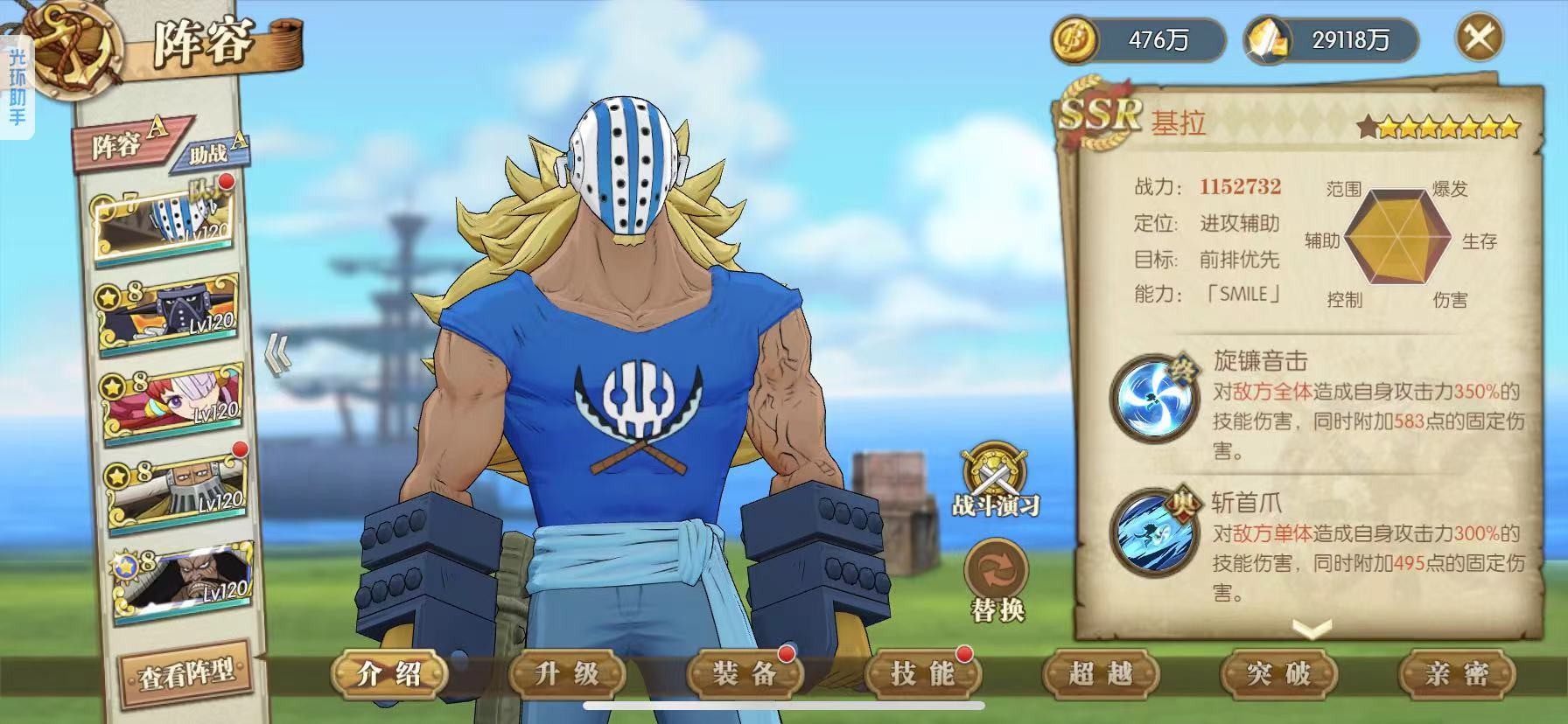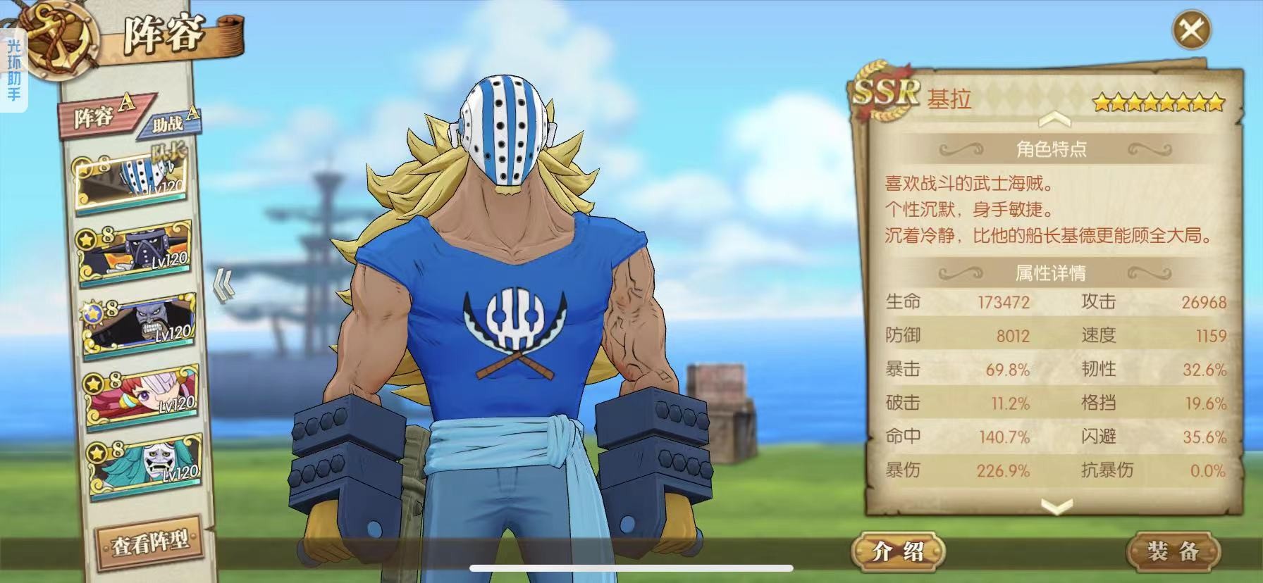 解读:基拉行动时,将自身攻击、暴击、暴击伤害的部分属性永久附加全体人物,悬赏输出PVE效果拉满。大将战国看到直接掉头,表示不玩了。