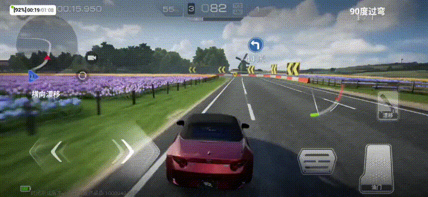 对于90度及以下的小角度弯道,使用「漂移过弯」是最高效的方式。选择好入弯点后,按住方向键点击手刹就可以进行漂移,漂移的角度由按住方向键的时间决定。记得起漂后就要踩下油门及时提速,车头摆正后就要按下反方向键结束漂移。