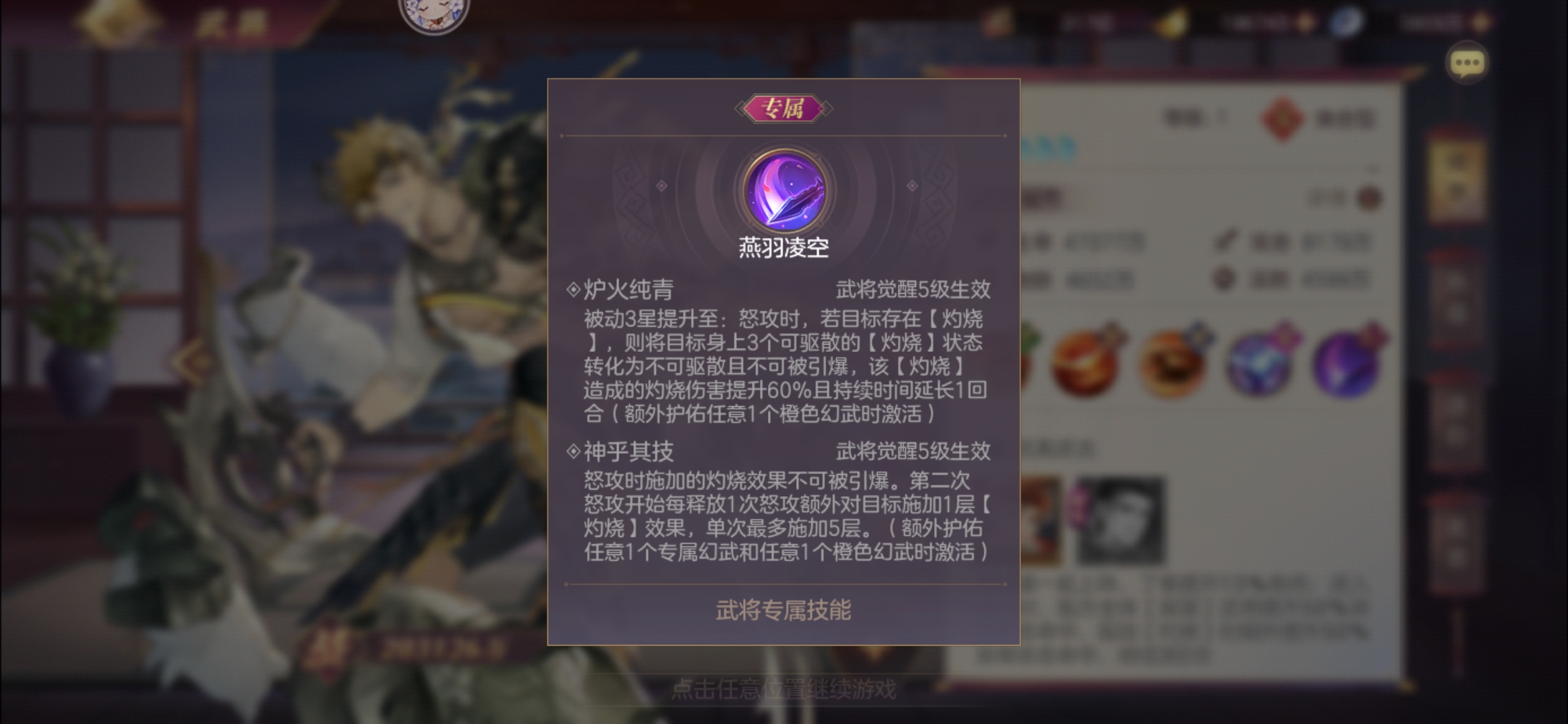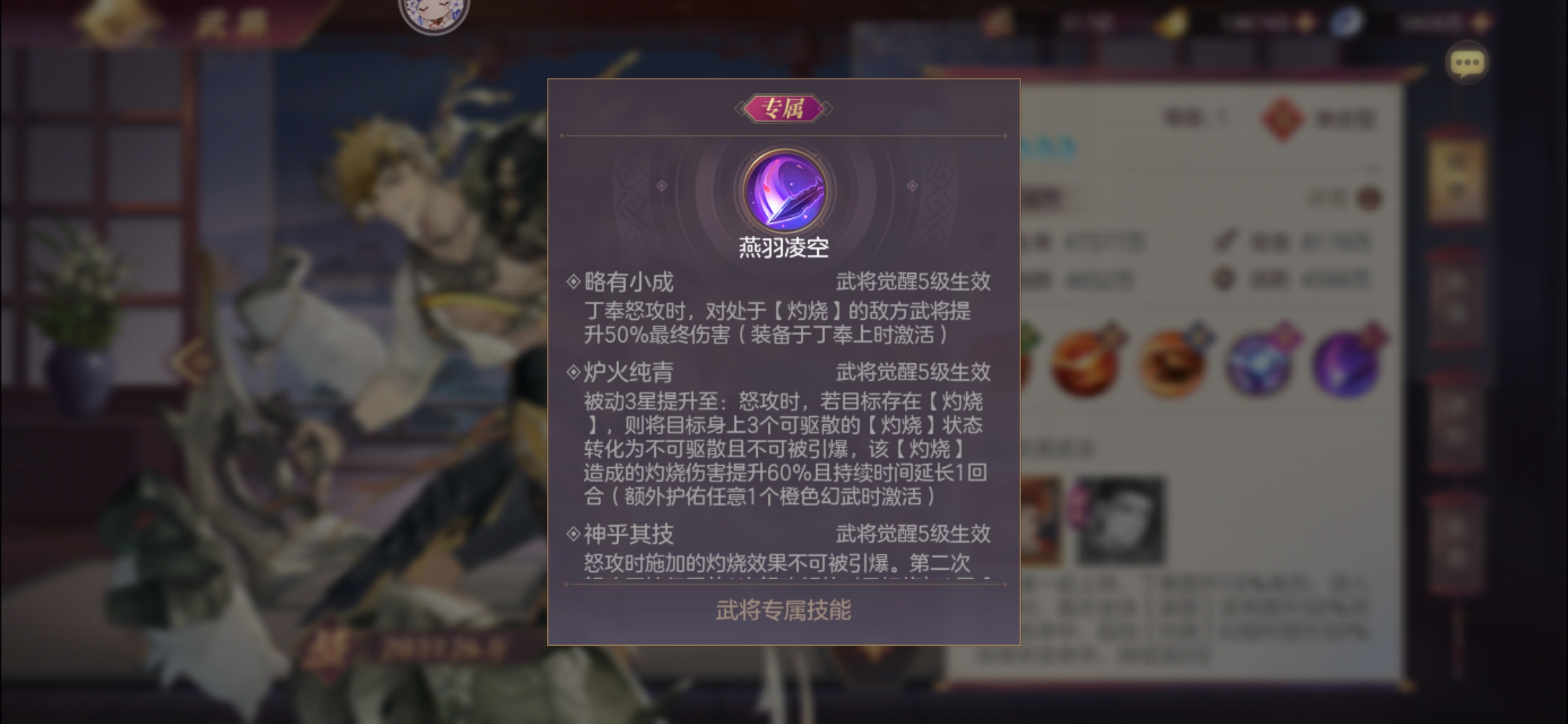 炉火纯青与神乎其技:使【灼烧】不可被引爆,强行与煊明孙策分家,并且数值略做提升后仍然极低。