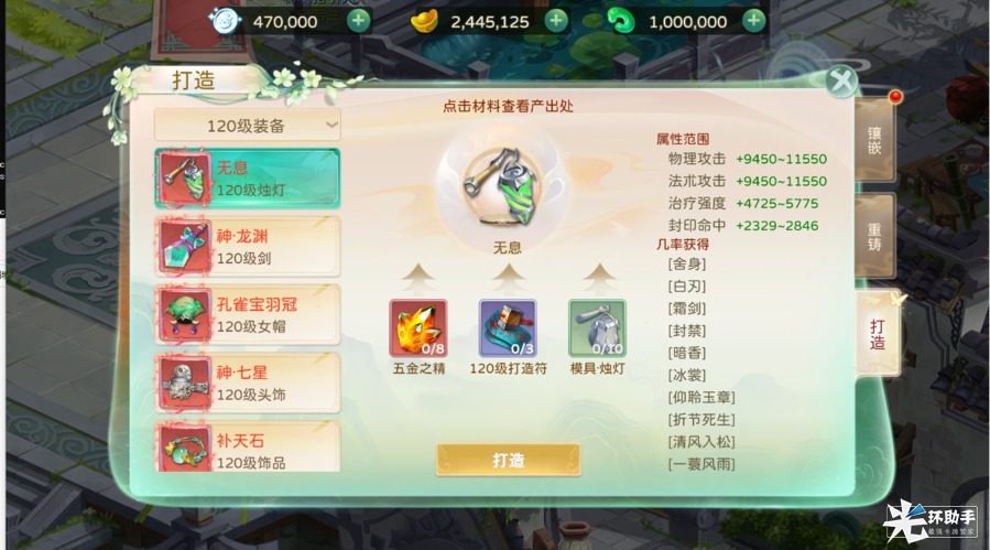 五金之精:随打造的装备等级提升,所消耗的五金之精数量的等级要求不同;