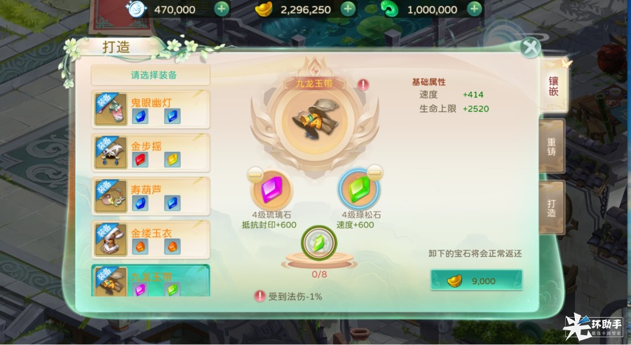 当镶嵌的宝石符合某个条件时,可开启额外的附加属性,宝石等级越高,附加的属性越大,不同的部位附加的属性效果不同,已镶嵌的宝石可以一键卸下,并且卸下的宝石不会绑定。