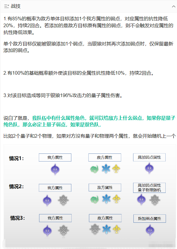 我们打忘却之庭最难受的就是发现boss的弱点不是自己练的属性,这回银狼出来就可以缓解这个问题