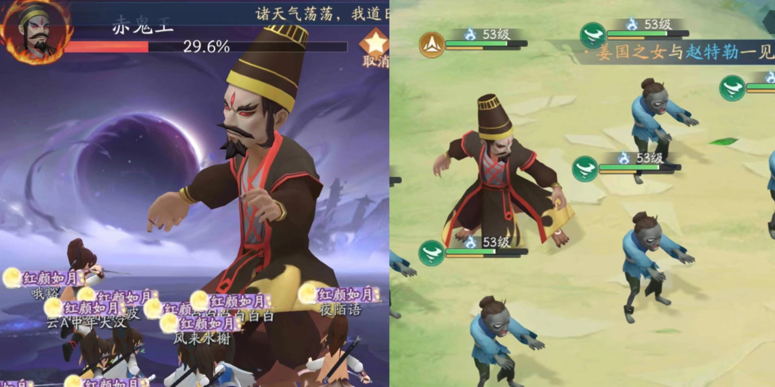 【解析】:这套侠客搭配星璇(土系)是核心输出,有星璇侠客的玩家优先打这个boss。星璇(土)+星璇(火)全体aoe伤害,附加中毒和火毒效果,对赤鬼王可以打出绝佳的伤害,星月公主可以对赤鬼王前排的小兵打击附带减防效果,一定程度上可以帮助队伍提高输出,阿奴全体aoe火毒配合星璇火毒非常好用,最后搭配赵灵儿全体aoe雷电伤害补伤害和李逍遥前排高暴击输出。