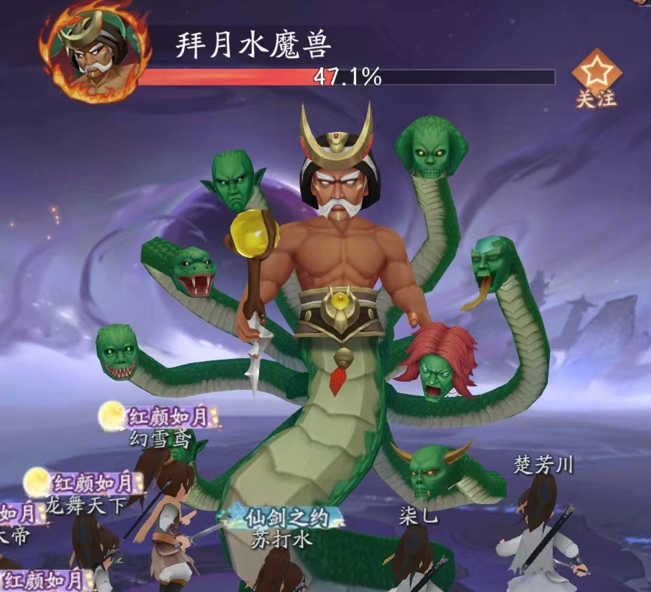 四:【拜月水魔神】核心:赵灵儿(雷)+单体攻击侠客。