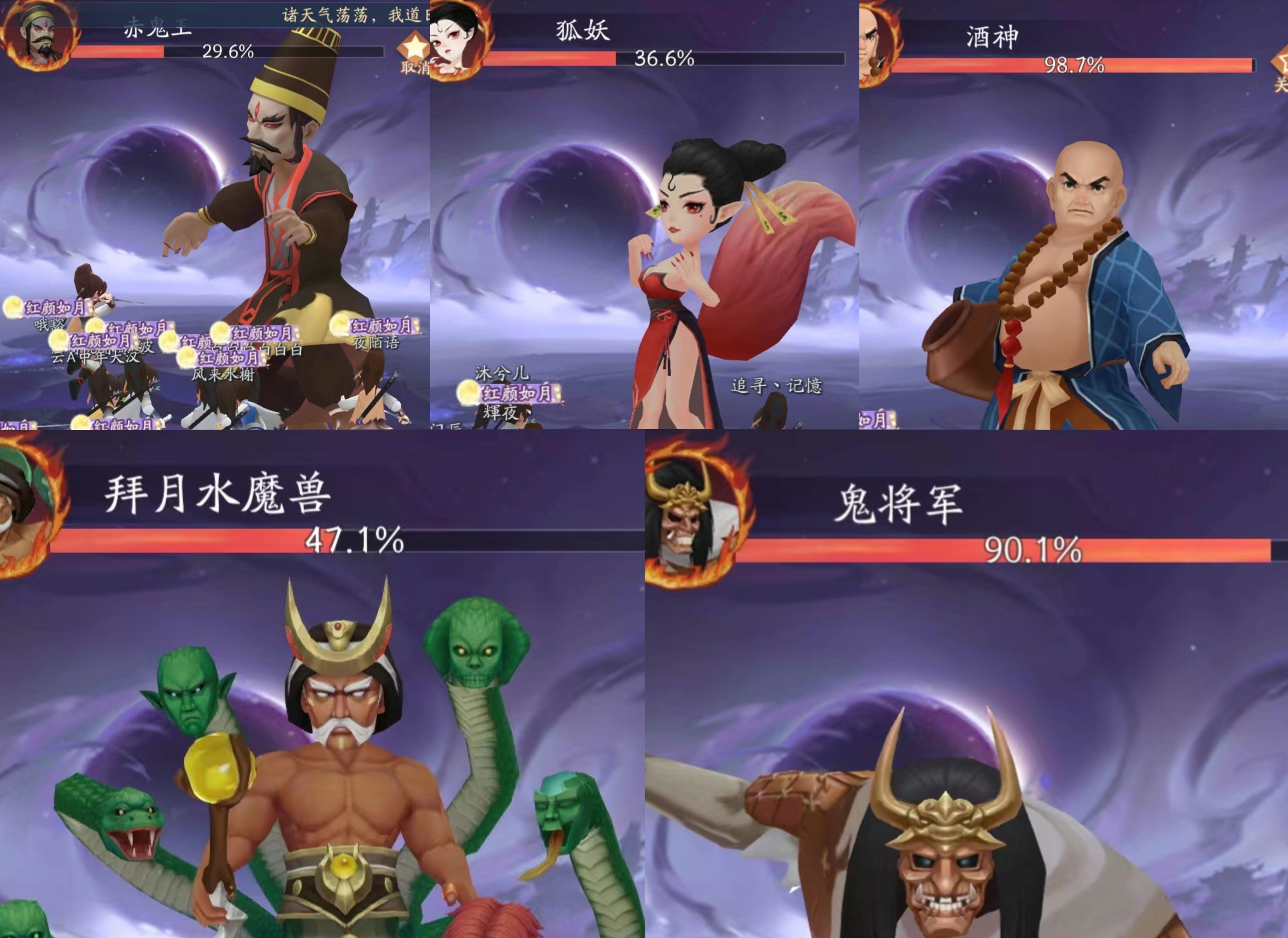 分别是【赤鬼王】【狐妖】【酒神】【拜月水魔神】【鬼将军】