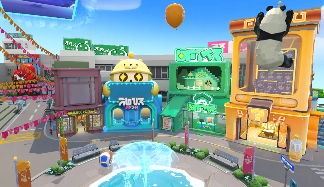 除了随处可见的周年旗帜盲盒机竟惊现大熊猫装饰