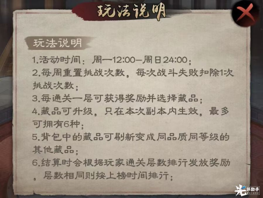 排行结算:按层数结算排行奖励,层数相同按上榜时间排行,奖励为万安寺货币+万安寺神兵箱/功法箱每周轮换+前3名7天临时称号,共20次挑战机会,特权加10次挑战机会,每次失败减1次挑战机会。