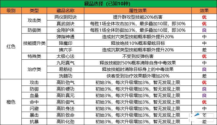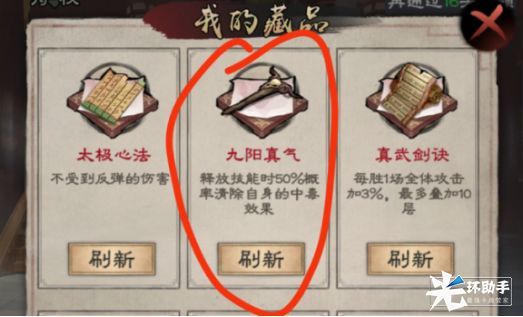 藏品刷新:每天可以免费刷新一次,当遇到特殊关卡需要刷特殊藏品时,一定要注意只能刷新成同品质同等级的藏品,例如你需要太极心法,那你只能拿其他红色藏品刷新,金色藏品是刷不出来红色藏品的。