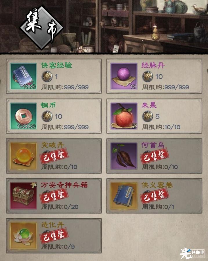 2、推荐兑换顺序(对提升战力来说):神兵箱/功法箱=何首乌>侠义密卷(升级情义技能)>经脉丹=铜币=朱果>侠客经验