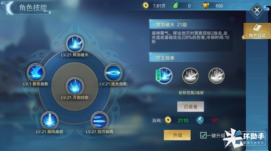 再来看看技能符文。每个可成长技能各配有三个技能符文,技能符文通过收集神器解锁,解锁后可以改变技能效果和伤害,仙友们可以自由搭配技能符文以达到不同的技能效果应对不同的战斗环境。