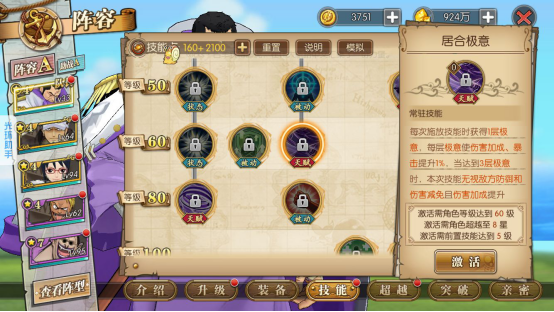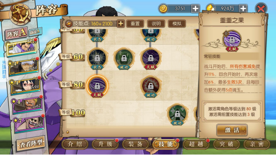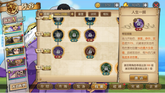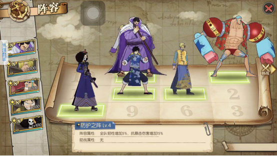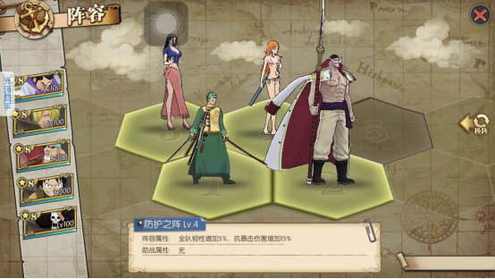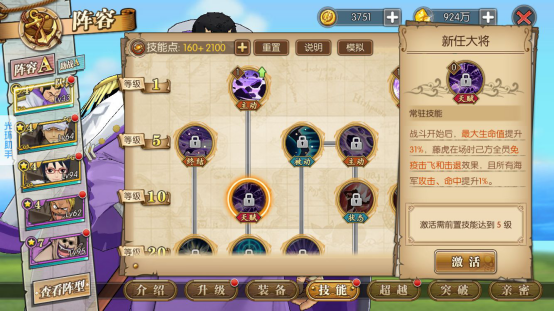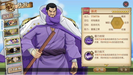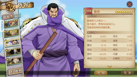 新任大将天赋,藤虎的上场战斗后提高了生命值,藤虎在场免疫击飞与击退,把乔巴的奥义效果有点针对,其次使海军队伍提高了攻击与命中。