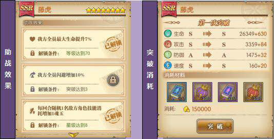 藤虎又一个关键的天赋:战斗开始时改变重力,敌方全体速度、闪避百分比降低,所有技能魂玉消耗增加1,我方全体速度、闪避百分比提升,所有技能魂玉消耗降低1,释放技能额外获得10点怒气。你们说强不强,有藤虎和没有藤虎的区别,毕竟藤虎他使敌方人物使用技能增加1魂玉,很好的卡住技能,不过有双藤虎在场互相抵消了