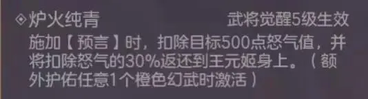 幻武能让王元姬扣除对方的怒气,同时给自身回怒,只是数值比较可怜,给自身回复的怒气更是只有最多300点,作用有限。