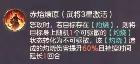 神乎其技:提高我方武将叠满“疑城”后造成的灼烧伤害。