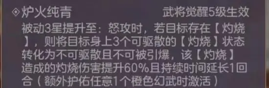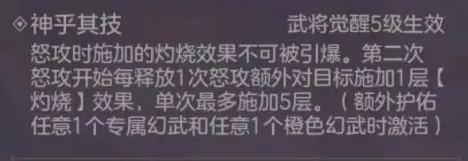 神乎其技:让丁奉怒攻能叠加更多的灼烧,且自身的灼烧不可驱散。