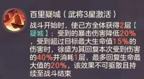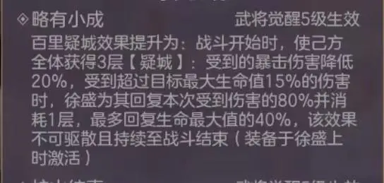 略有小成:强化三星技能,强化“疑城”BUFF效果,全面提升队伍坦度。