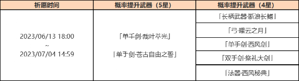 这期的武器池,整体来看偏功能性,西风、祭礼以及海祇民系列的武器都是辅助以及副C常用的武器,而五星武器无论是苍古还是裁叶萃光的角色泛用性都还不错,一个对应辅助一个对应输出,是比较均衡的池子。