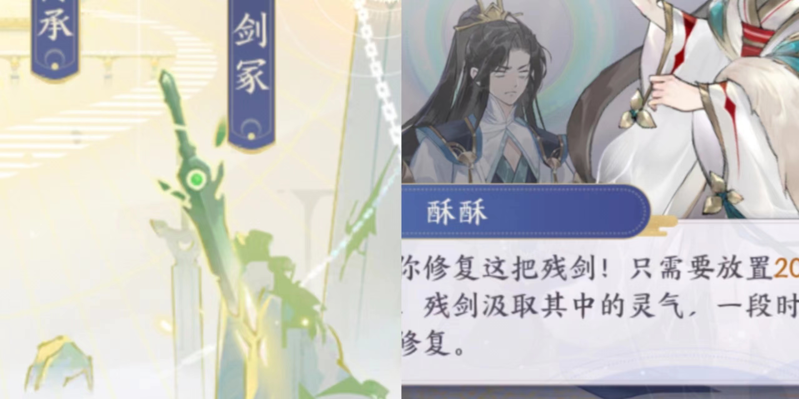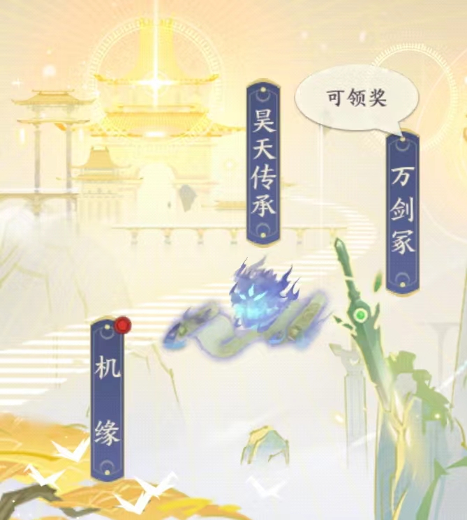 ①首先需要在【洞天幻化】更换(梦金宵)的背景,主界面会发生改变,在(万剑冢)下方山处的位置会出现一把大魔剑,点击这个魔剑就会触发剧情。