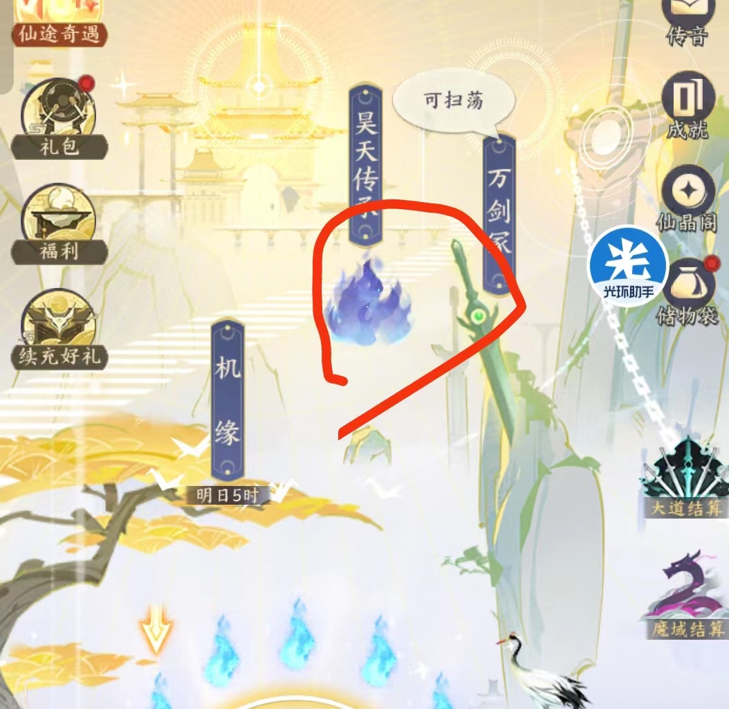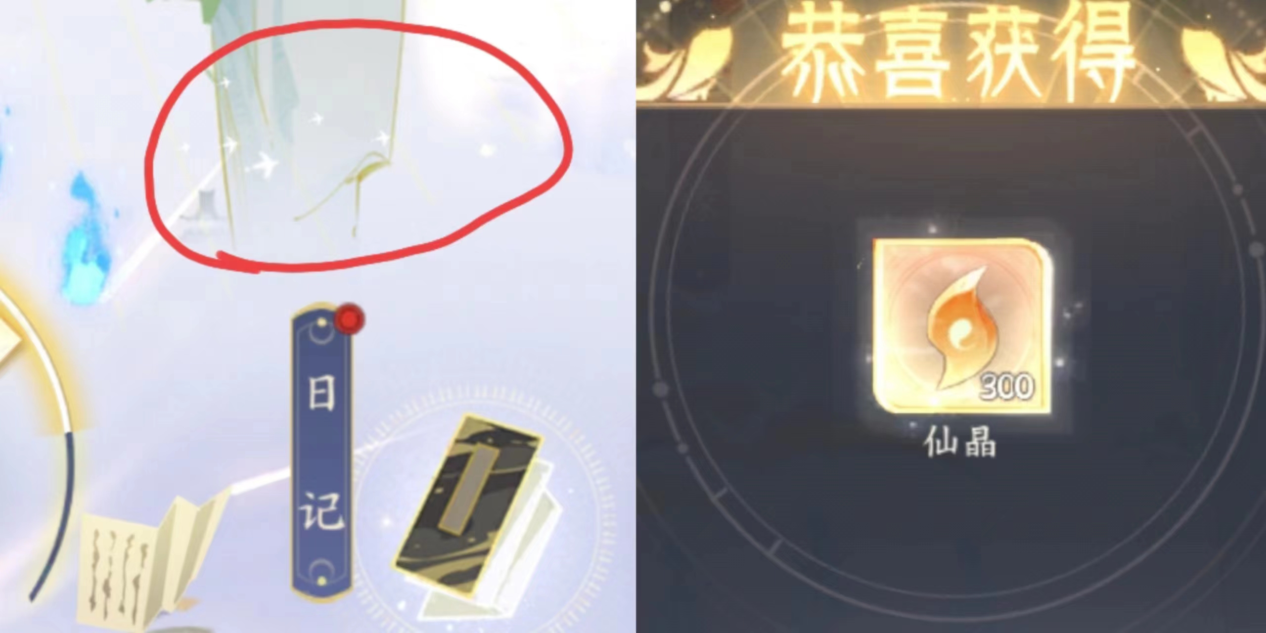 在主界面的【日记】上方有一群类似“小飞机”✈️发光的图标,点击3次左右,就可以触发第隐藏线索,同时获得300个仙晶奖励。