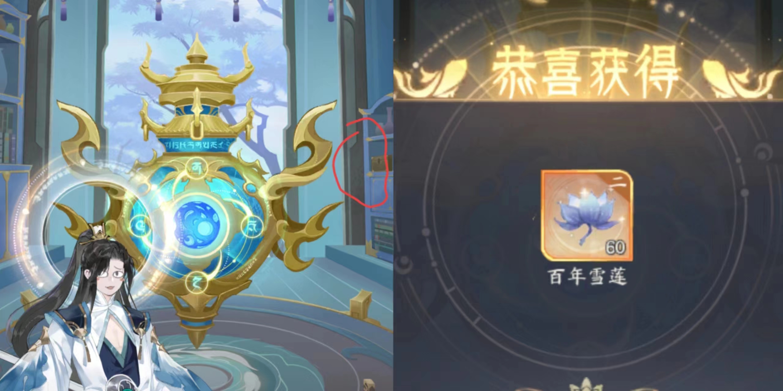 在【洞府】中的练丹炉旁边有个木制的箱子,点击后触发对话就可以完成,外加60朵百年雪莲奖励。